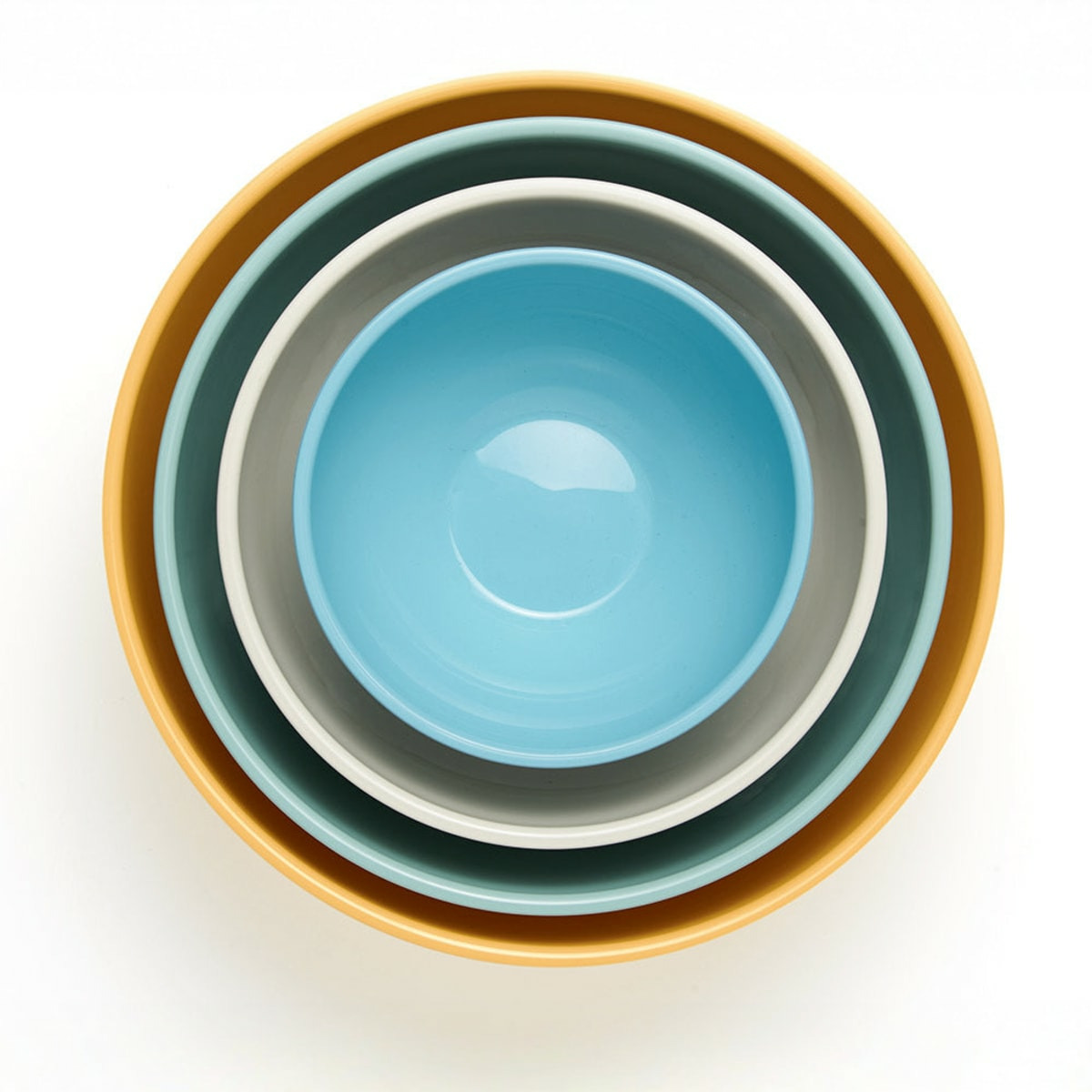 Légers, empilables et superposables, ces quatre bols mélangeurs aux couleurs fraîches vous accompagneront au quotidien pour toutes vos préparations sucrées ou salées.