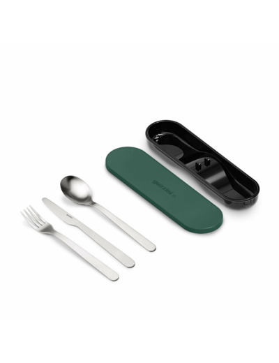 Rangés dans un étui compact et hermétique, le lot de 3 couverts en inox, résistants et durables, complèteront cette boîte design et compacte.
