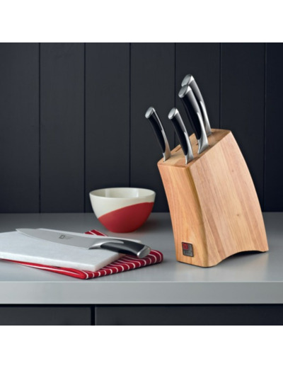 La collection Kyu a une forme fluide, qui rappelle l'arc japonais traditionnel, gracieux et puissant. La lame est en acier inoxydable Chrome Molybdène Vanadium riche en carbone, pour la résistance à la corrosion ainsi que la résistance mécanique à la chauffe. L'inspiration japonaise au service de la coupe.