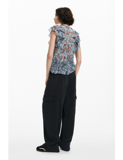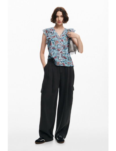 Conçue par Desigual, cette blouse marie avec finesse un style bohème chic à une coupe moderne et confortable. Son imprimé floral vibrant capte le regard tandis que les volants structurent subtilement la silhouette, offrant une allure à la fois dynamique et raffinée. Idéale pour un look casual ou une tenue plus habillée, elle s’adapte à toutes vos envies.