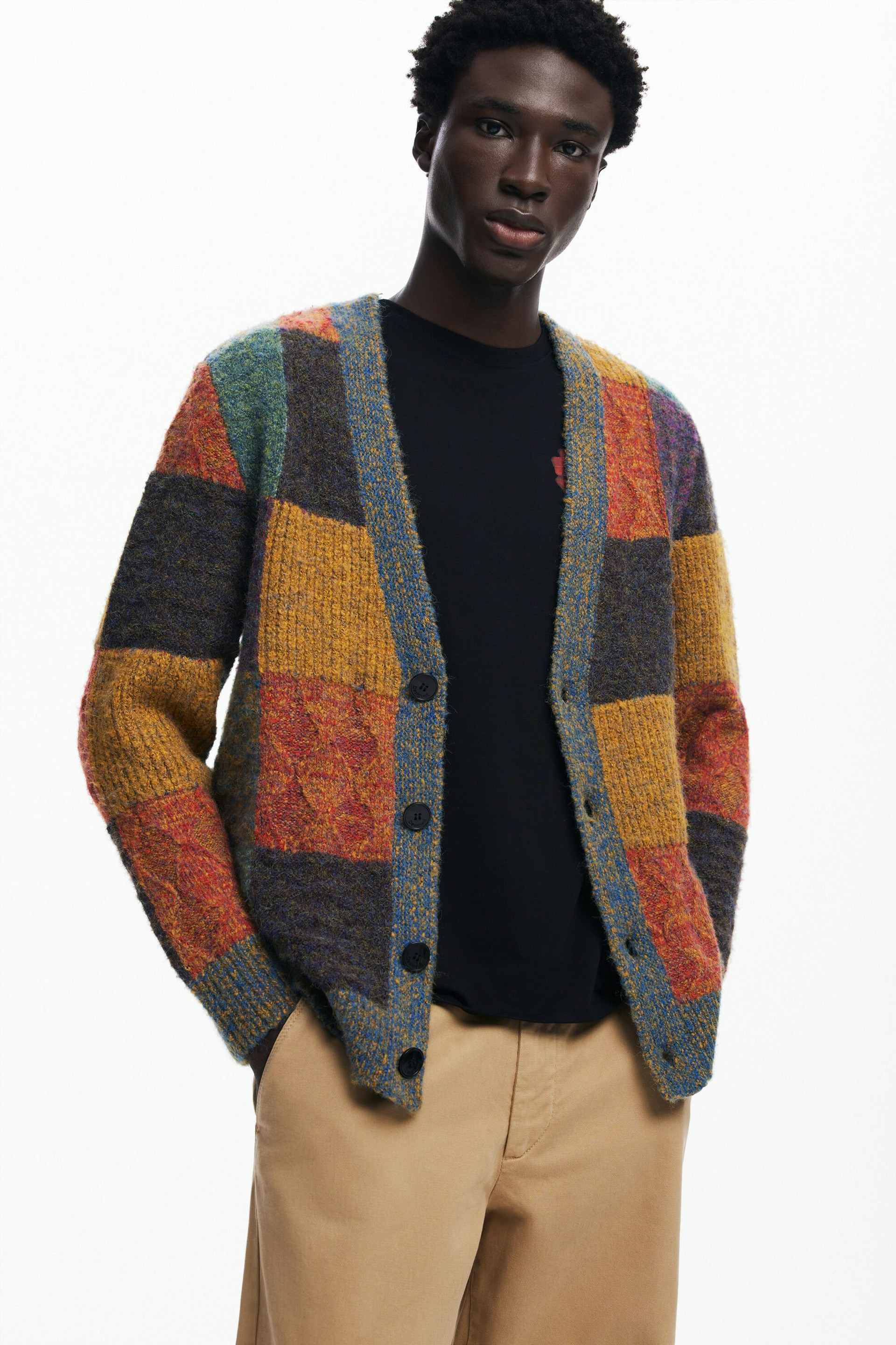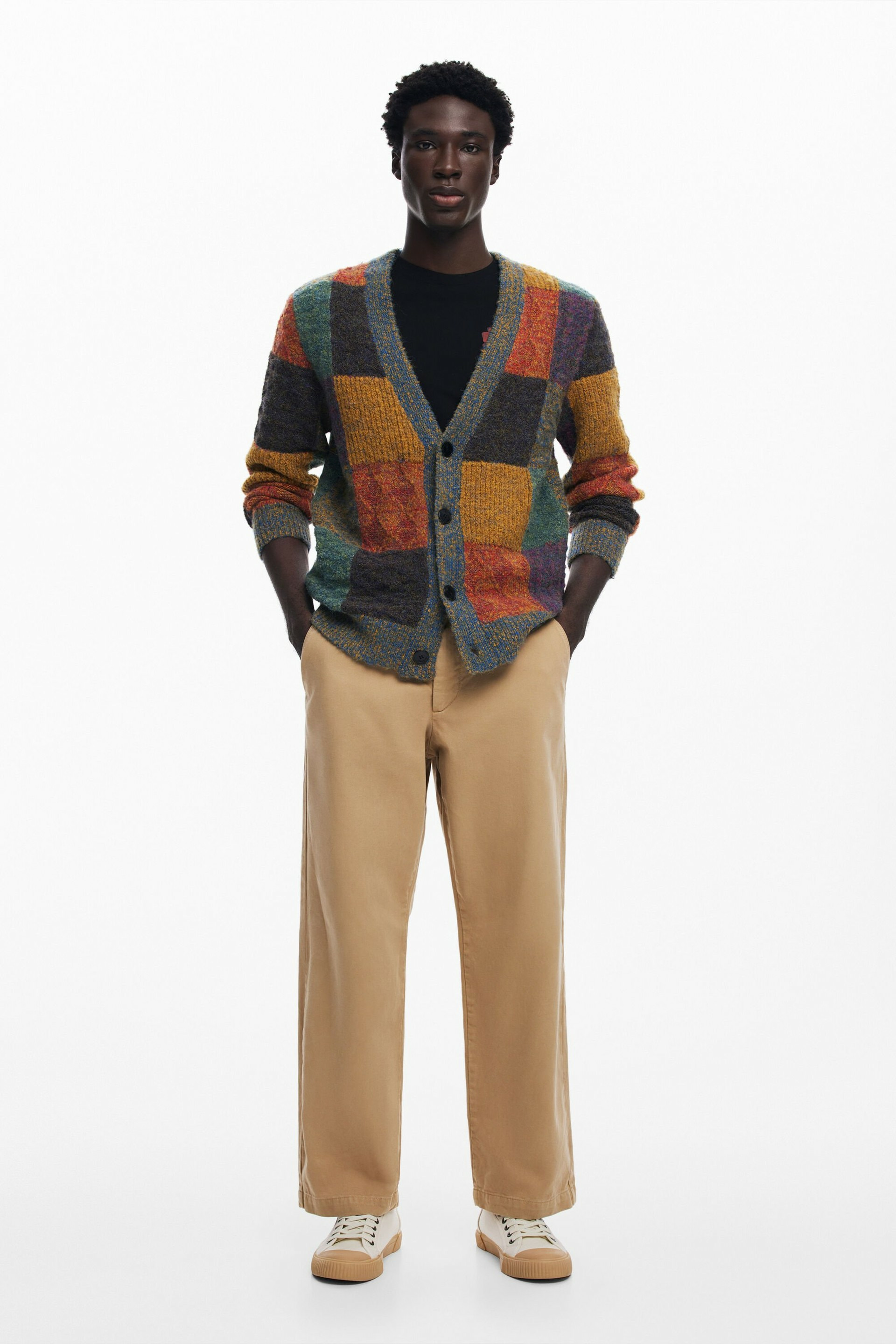 Adoptez l’élégance décontractée avec ce cardigan en maille à motif à carreaux, signé Desigual. Une pièce qui allie style graphique et confort pour sublimer vos looks quotidiens.