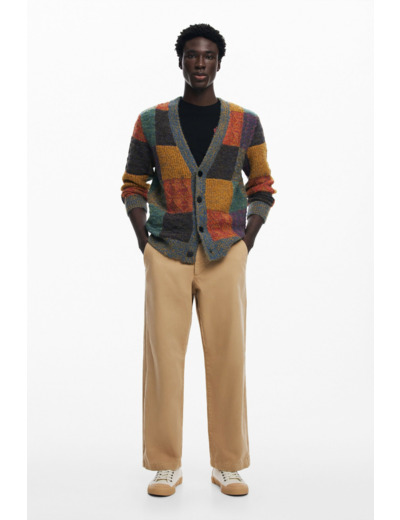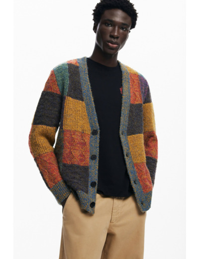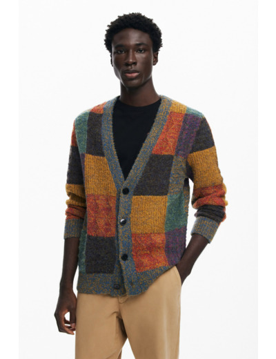 Lavage à la main recommandé pour préserver la qualité de la maille et la vivacité des couleurs. Pullover à manches longues avec fermeture boutonnée, motif à carreaux distinctif, marque Desigual.