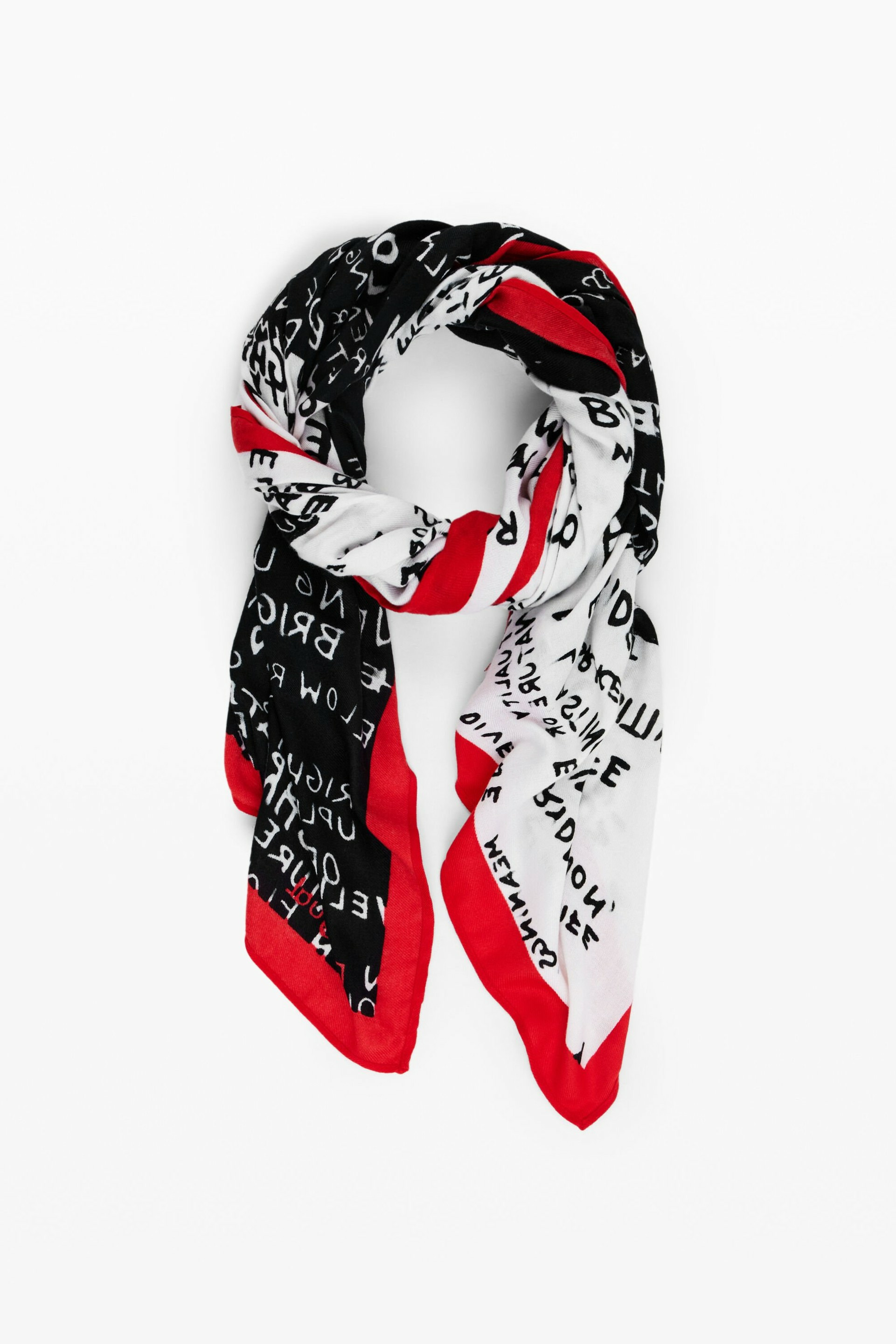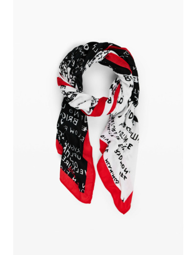 Confectionné avec soin, ce foulard se distingue par son design graphique et ses inscriptions originales, caractéristiques de la marque Desigual. Léger et fluide, il apporte une touche moderne et dynamique à votre look, que ce soit noué autour du cou, en bandeau ou sur un sac. Son imprimé unique capte le regard sans effort, pour un effet mode immédiat.