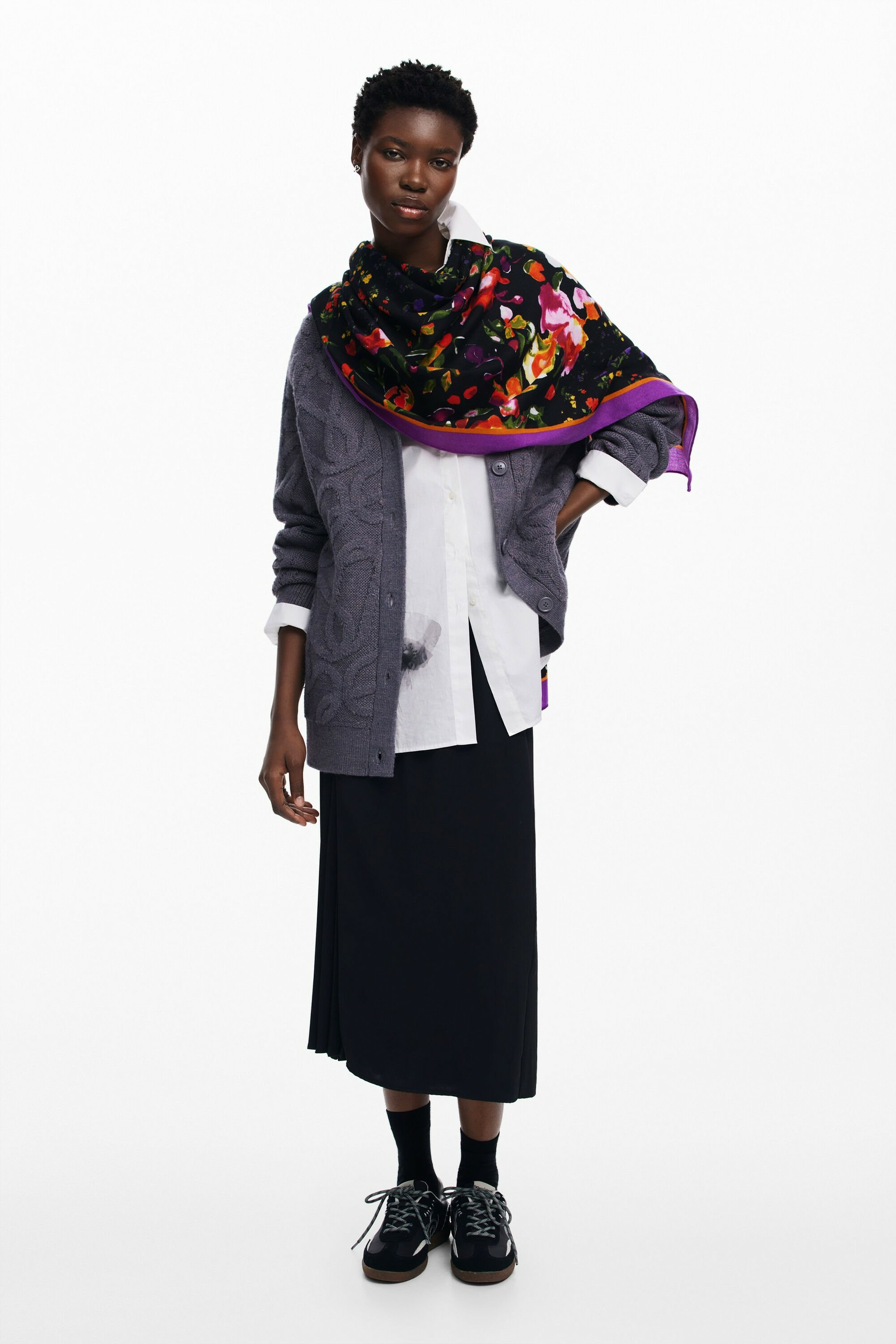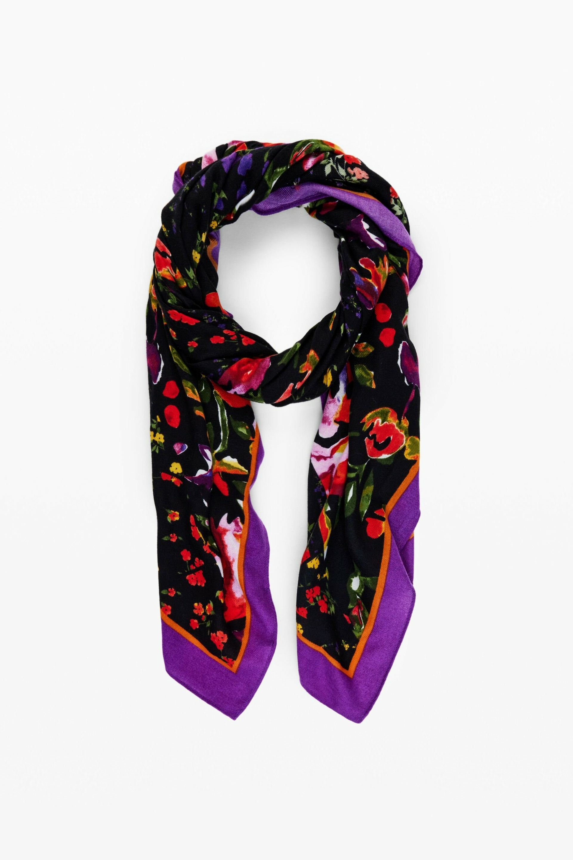 Dimensions adaptées pour un nouage multiple. Lavage à la main recommandé pour préserver la qualité des couleurs et la finesse du tissu. Marque : Desigual. Catégorie : rectangle foulard.