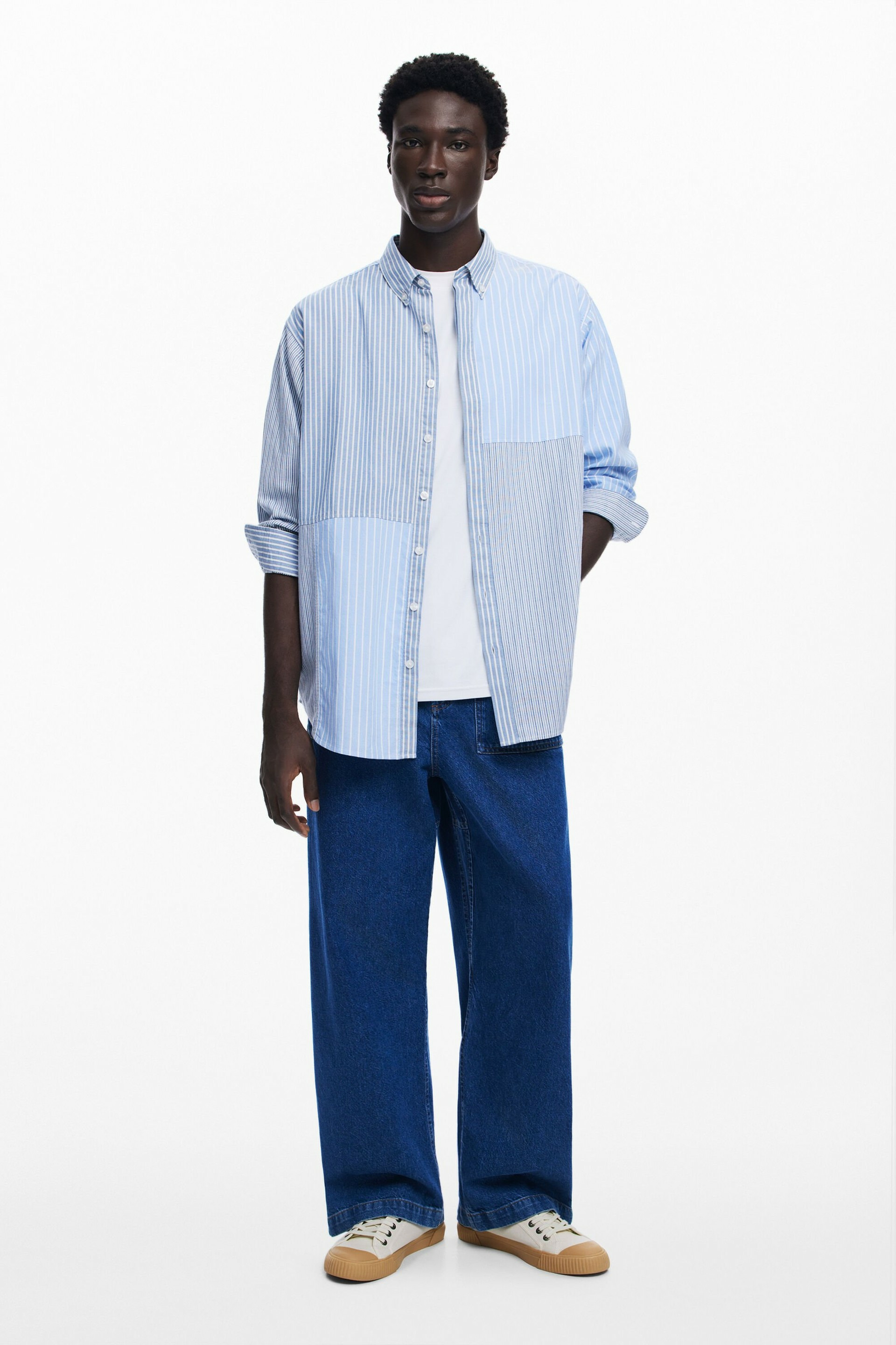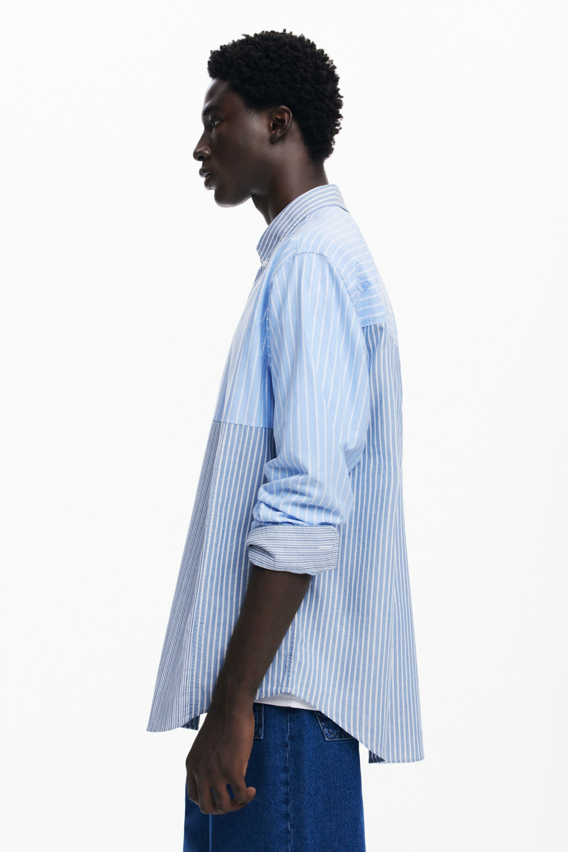 Affirmez votre style avec cette chemise patchwork à rayures, alliant audace et élégance décontractée. Une pièce unique signée Desigual pour dynamiser votre garde-robe.