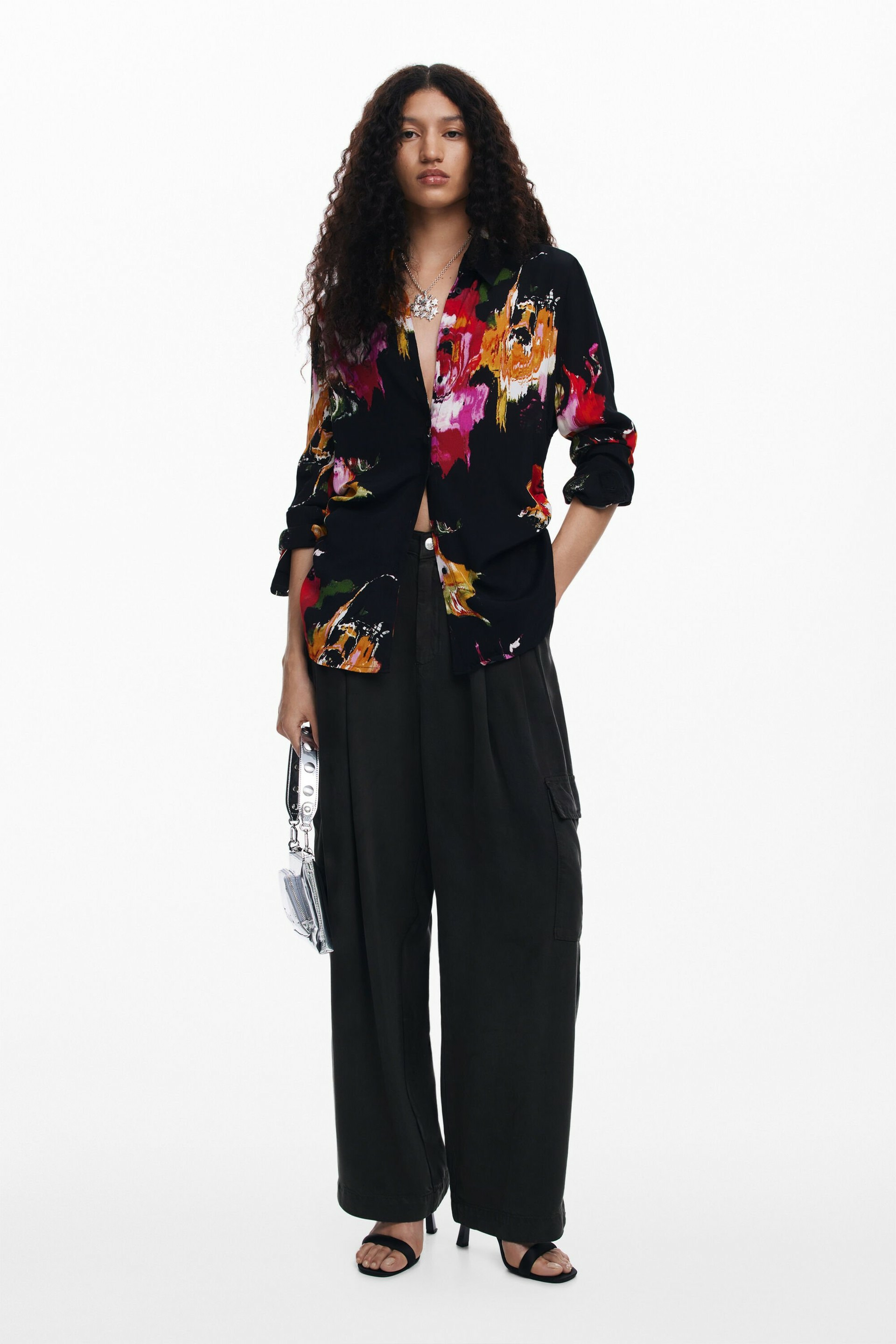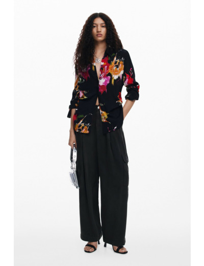 Lavage en machine à l’eau froide, cycle délicat. Chemise à manches longues avec col classique et fermeture à boutons. Imprimé floral distinctif, marque Desigual.