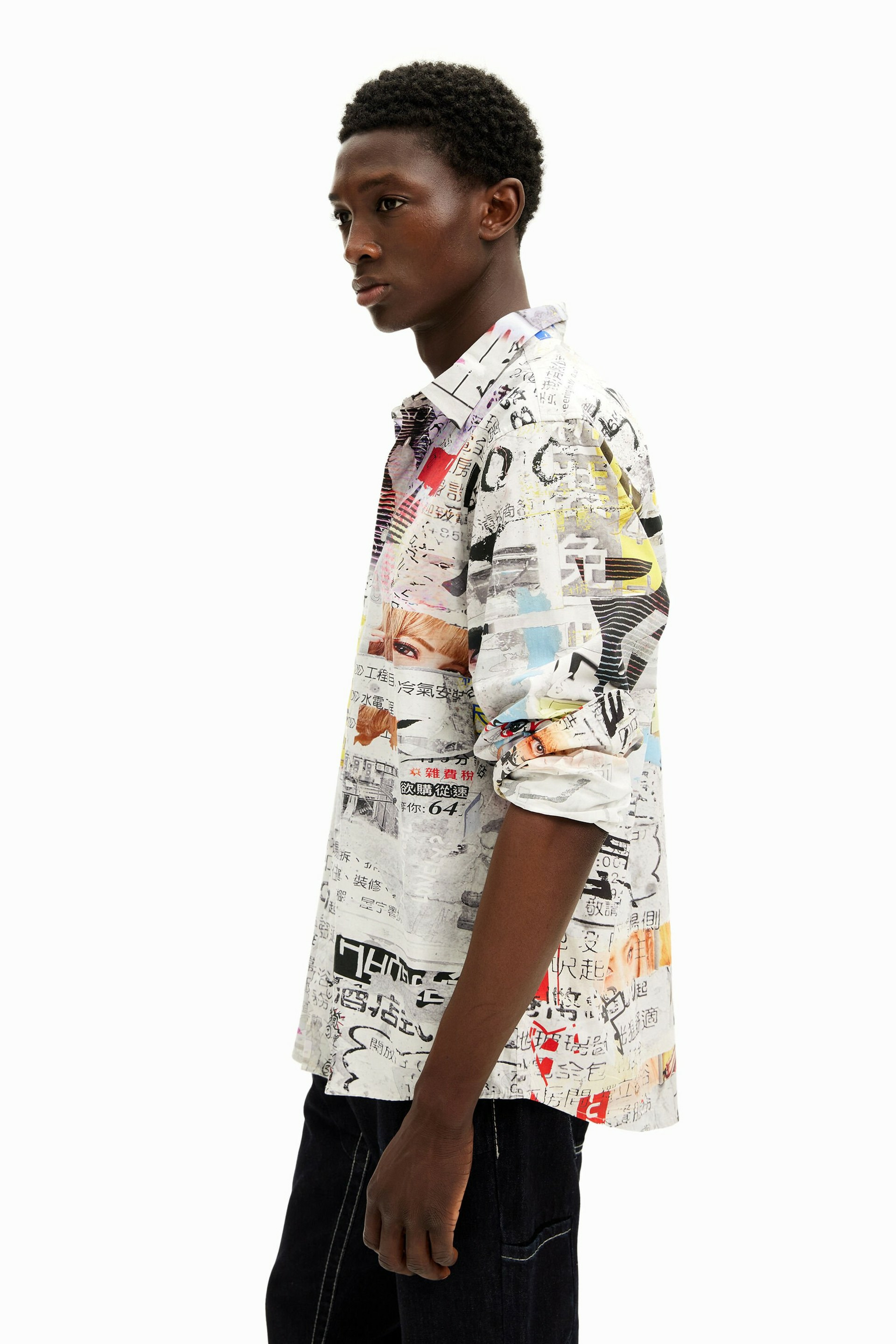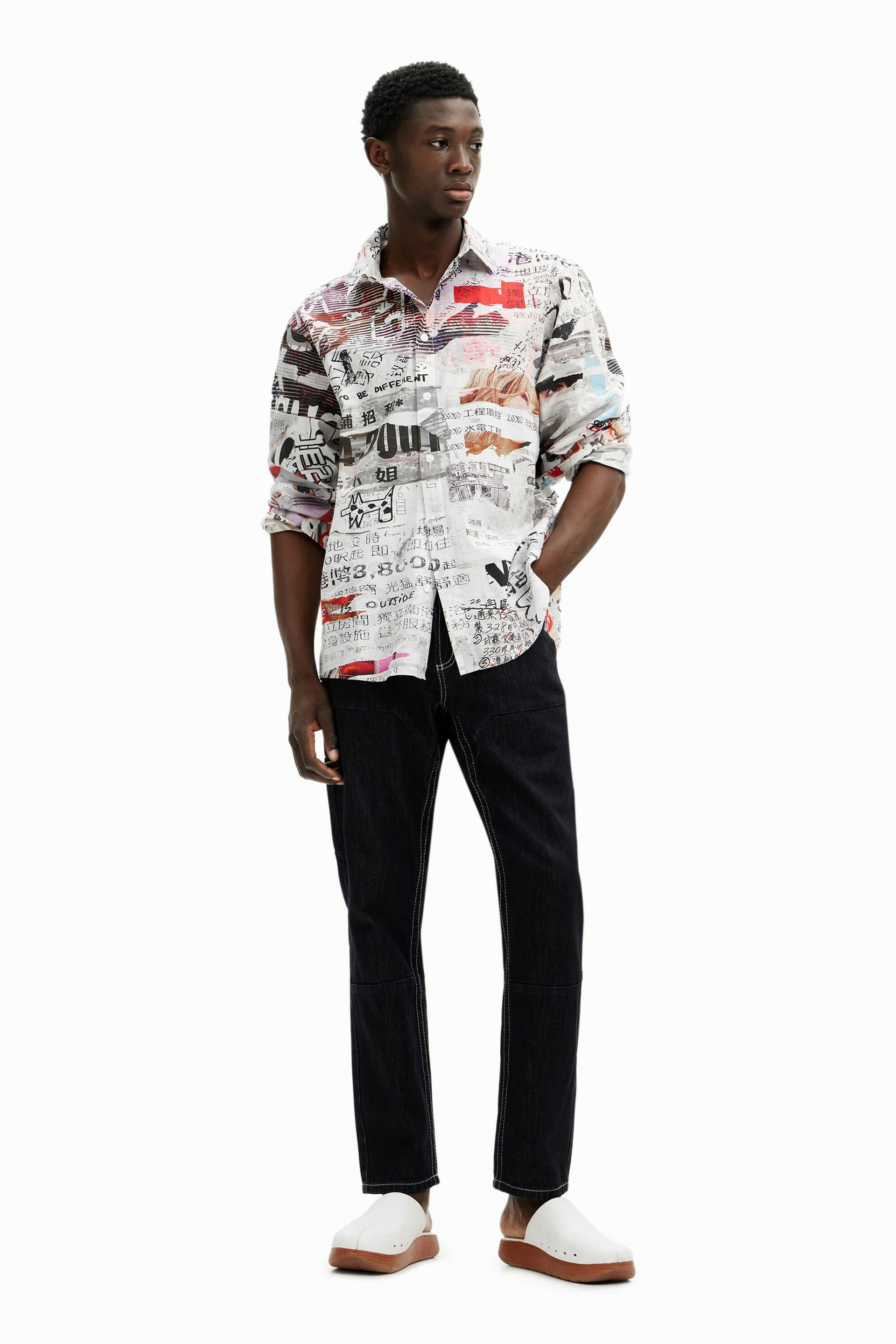 Affirmez votre style avec cette chemise à manches longues signée Desigual, sublimée par un design inspiré de la presse japonaise. Une pièce unique qui allie audace graphique et élégance contemporaine.