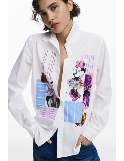 Lavage en machine à froid à l’envers, cycle délicat. Fermeture à boutons. Col chemise classique. Manches longues. Design avec découpes de fleurs et motif Minnie Mouse.