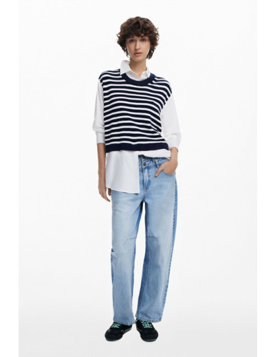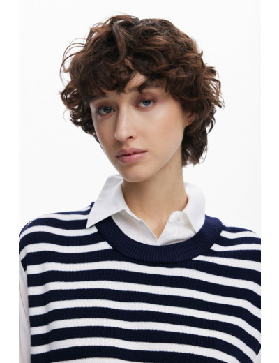 Réponse : Elle dispose d’un col rond superposé qui ajoute une touche moderne et originale.