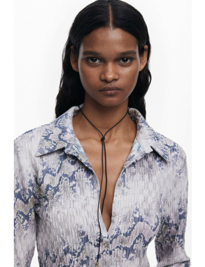 Profitez d’un vêtement facile à porter qui valorise votre allure sans compromis sur le confort. L’imprimé serpent ajoute une dimension unique à votre style, tandis que la coupe droite convient à toutes les morphologies. Cette chemise est un investissement mode qui traverse les saisons avec élégance.