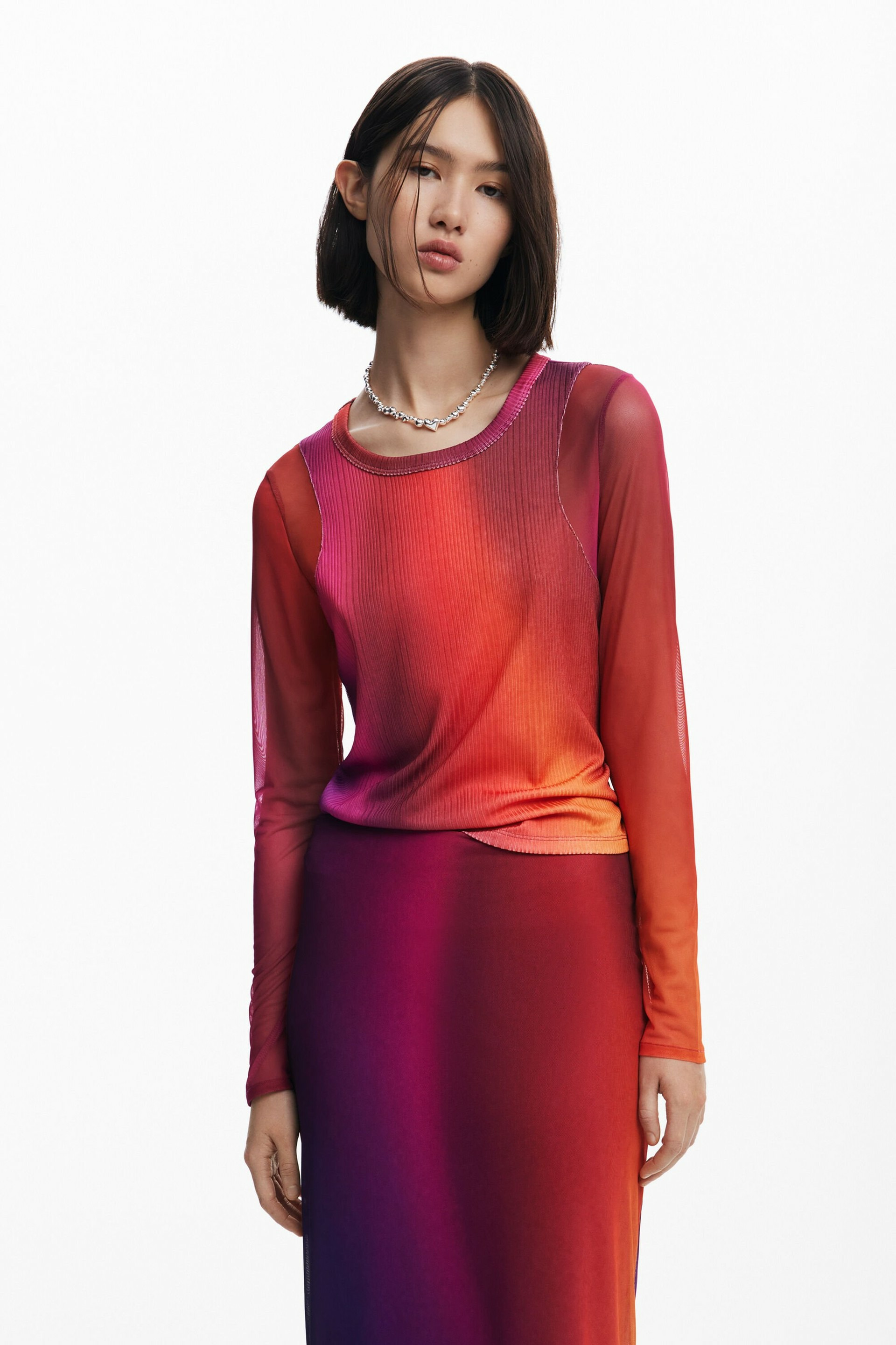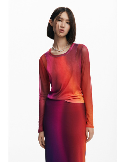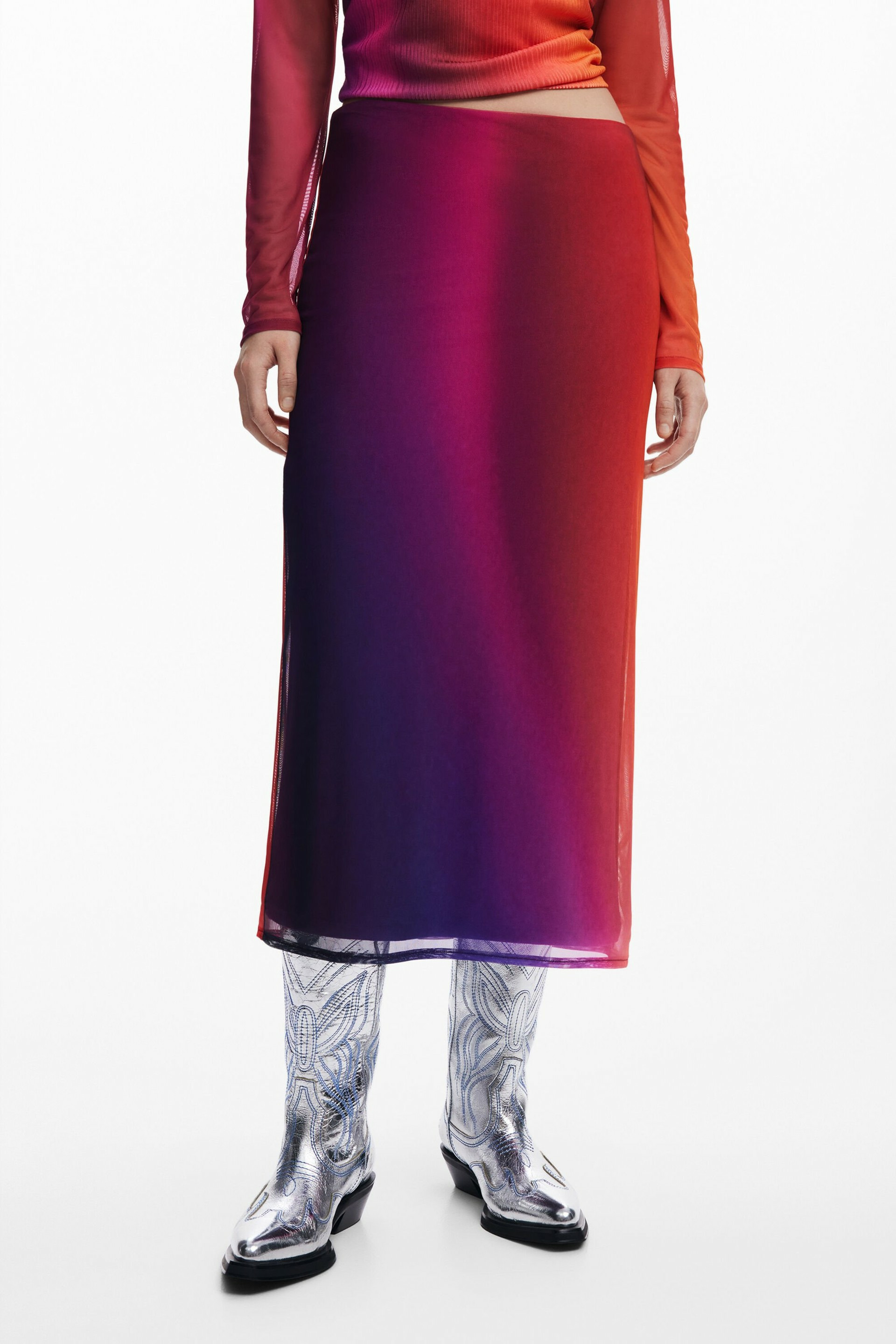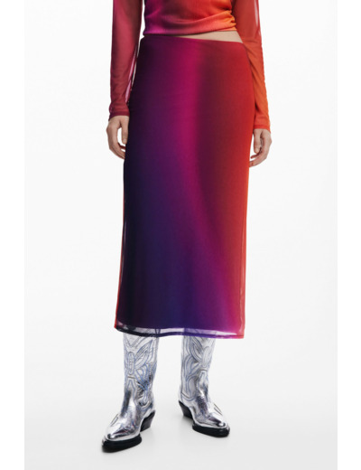 Affirmez votre style avec cette jupe crayon aux tons dégradés, sublimée par une fente arrière qui allie élégance et liberté de mouvement. Une pièce Desigual qui transforme chaque pas en une déclaration de mode audacieuse.