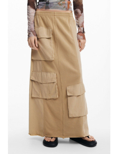 Affirmez votre style avec cette jupe longue cargo en maille, alliant praticité et élégance urbaine. Sa coupe fluide et ses multiples poches redéfinissent le confort au quotidien.
