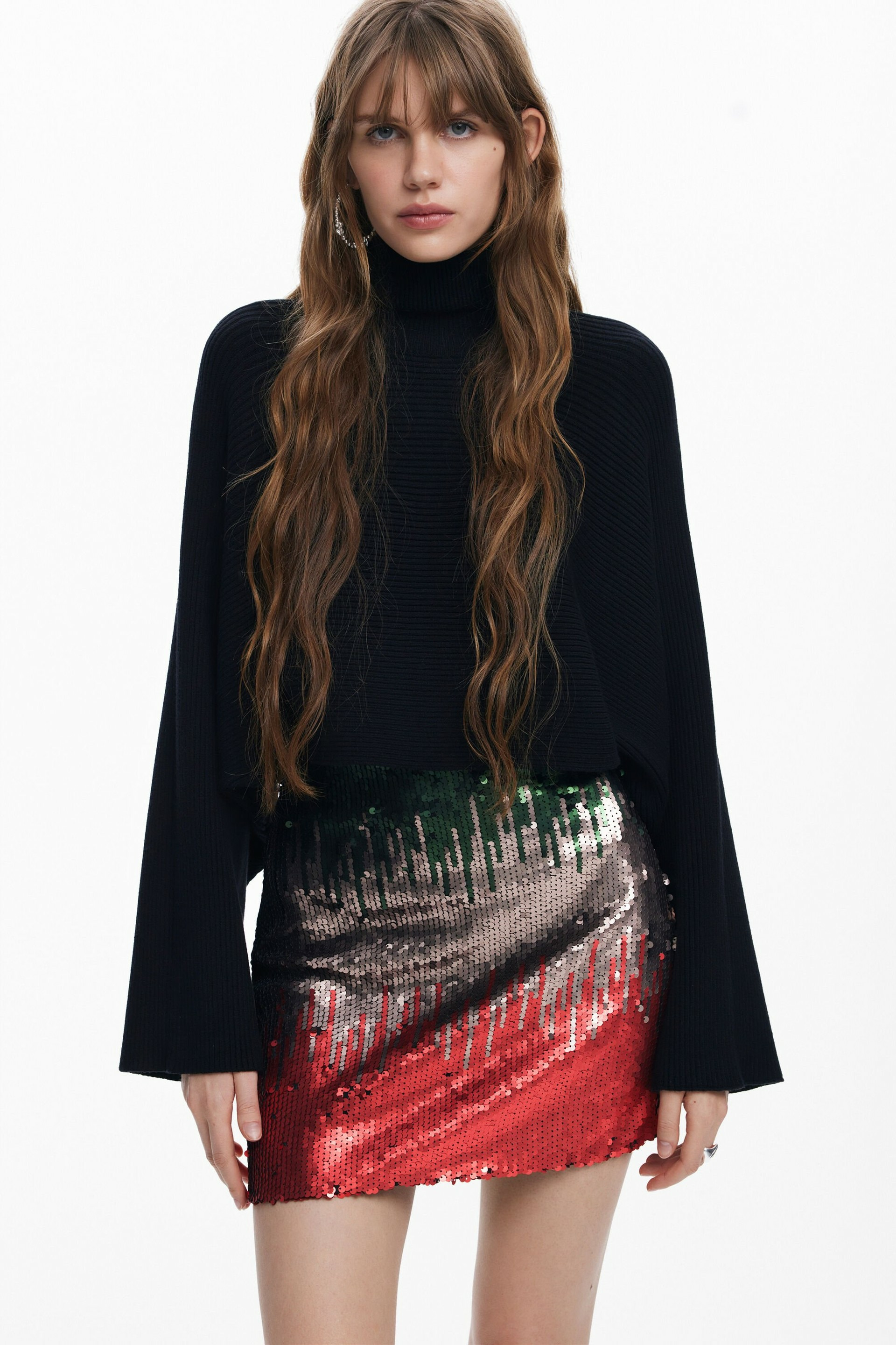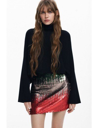 Brillez en toute occasion avec cette mini-jupe à sequins multicolores signée Desigual. Une pièce audacieuse qui capte la lumière et attire tous les regards.