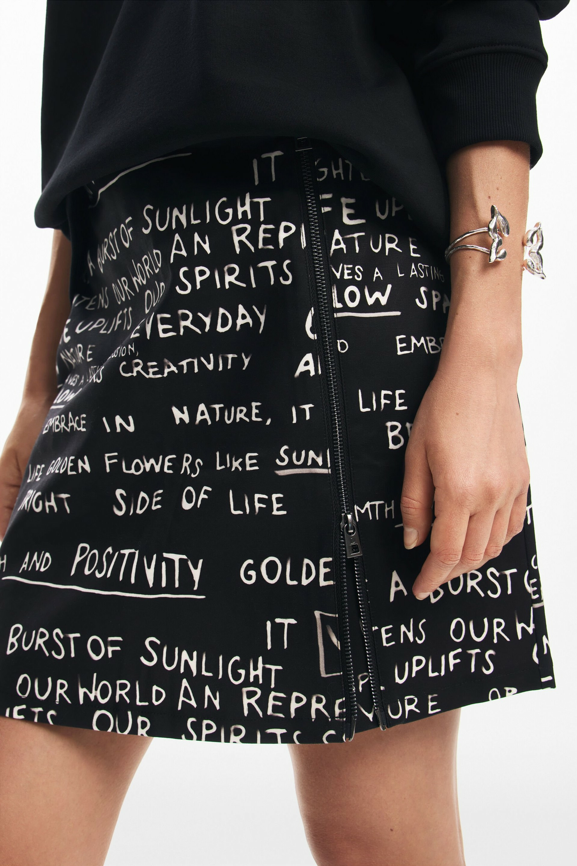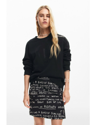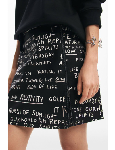 Affirmez votre style avec cette jupe courte ample signée Desigual, sublimée par un imprimé de phrases audacieuses et une fermeture éclair pratique. Une pièce unique qui dynamise instantanément votre garde-robe.