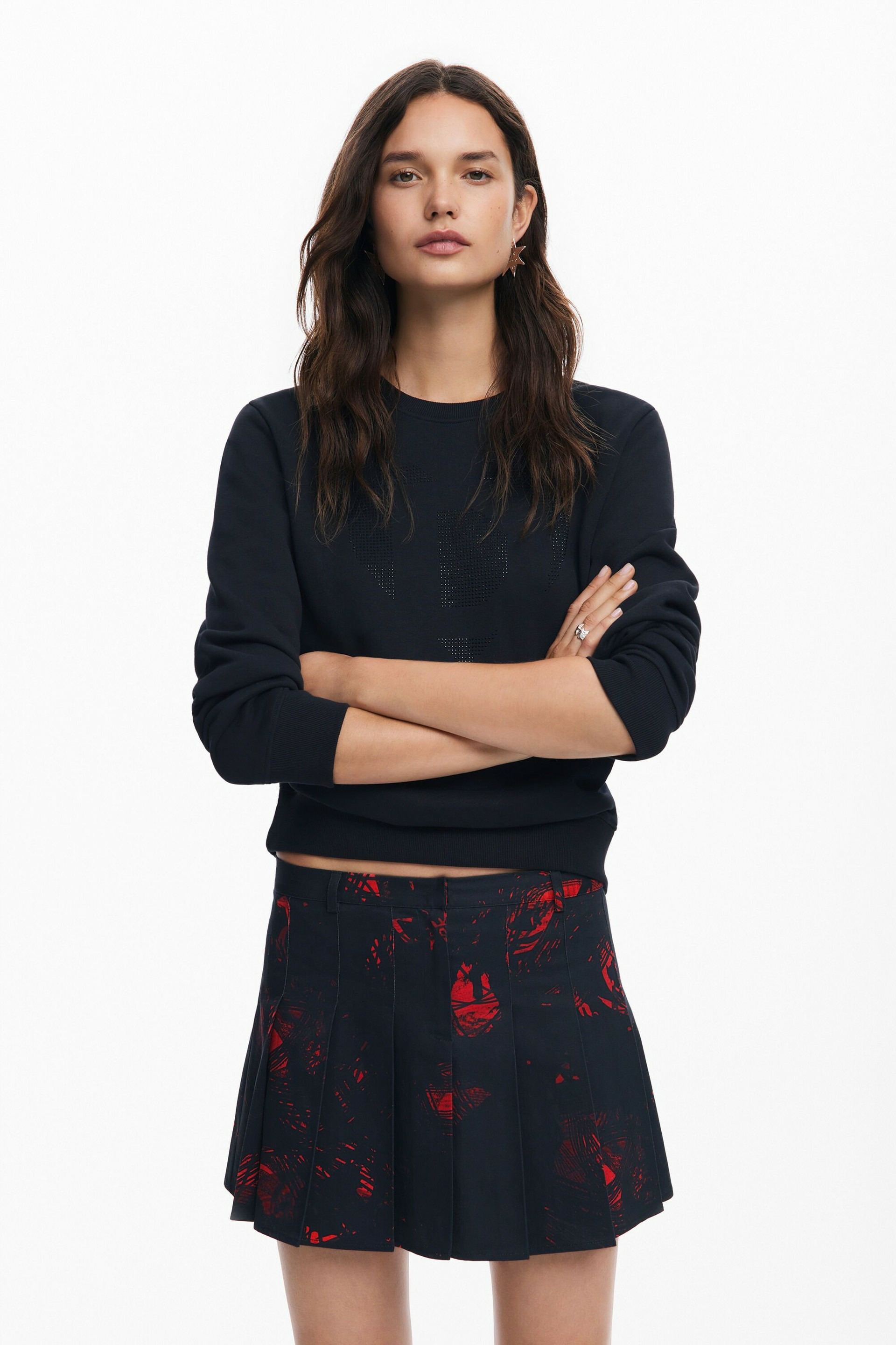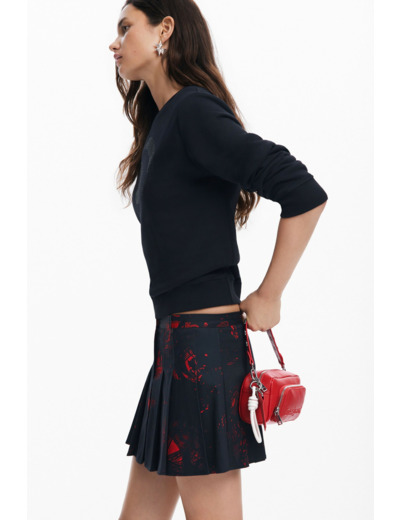 Conçue par Desigual, cette jupe courte joue sur le contraste des couleurs et la texture plissée pour offrir un look à la fois structuré et fluide. Sa coupe impeccable souligne la silhouette tout en apportant une touche graphique et contemporaine, idéale pour un look urbain chic ou une tenue de soirée décontractée.