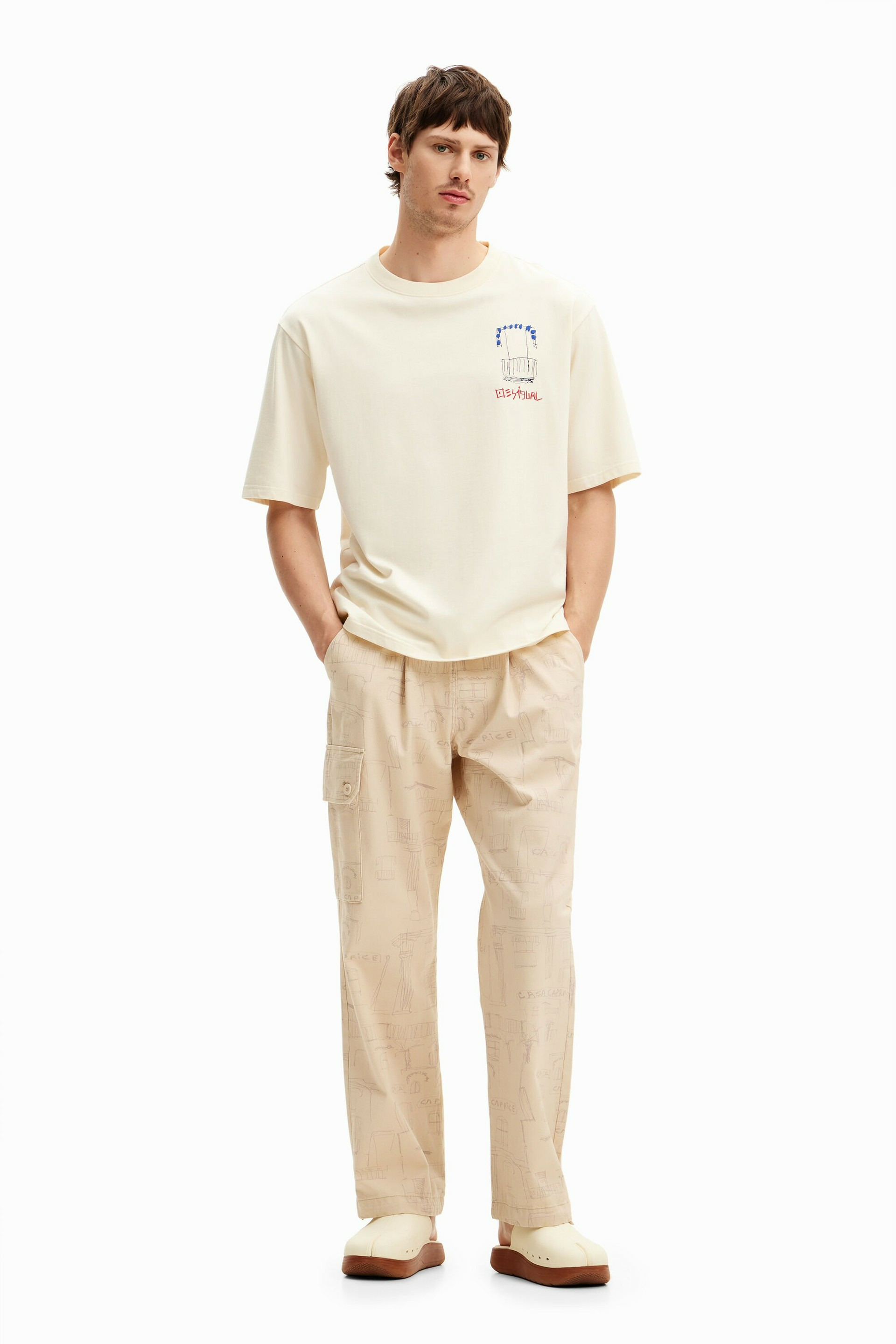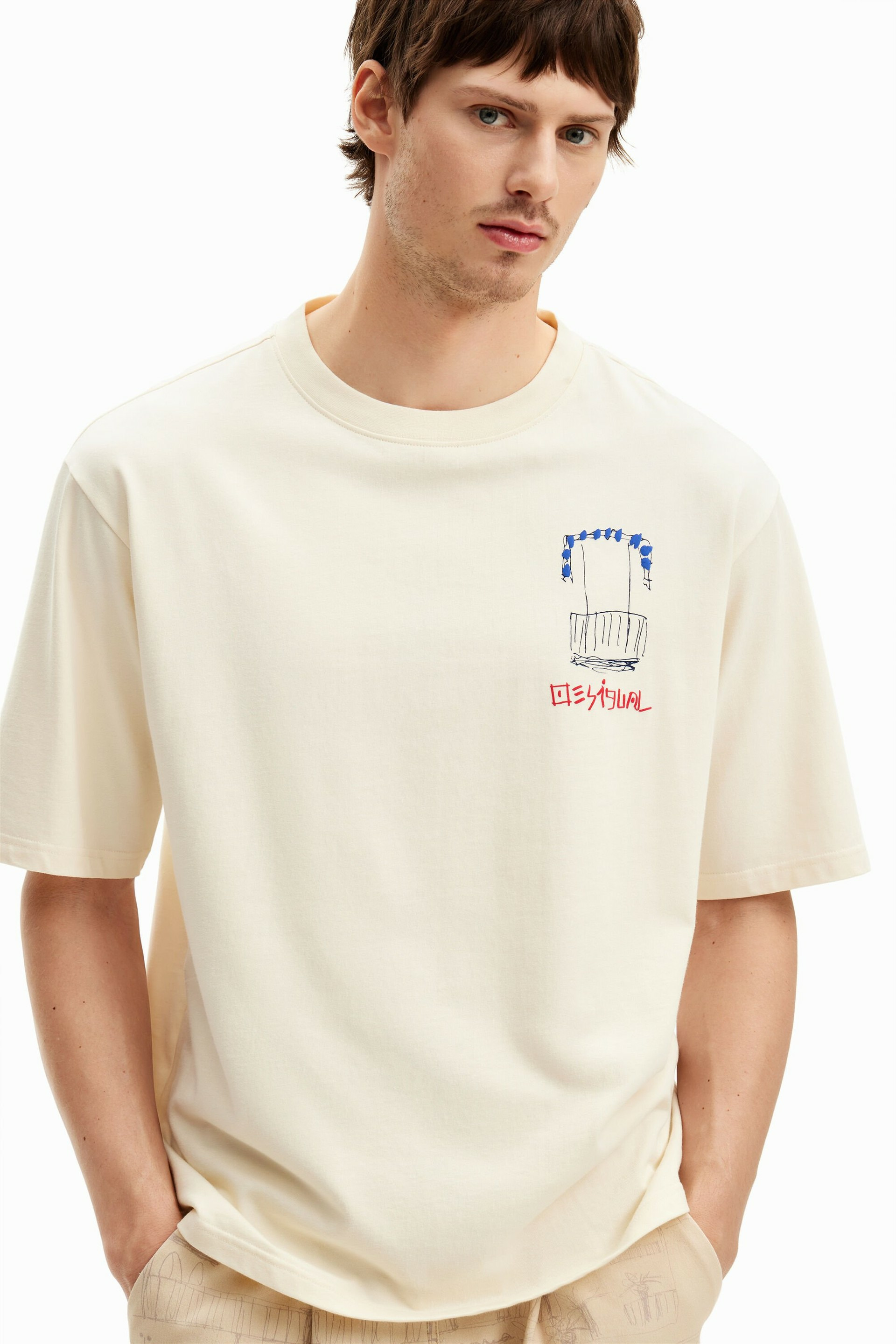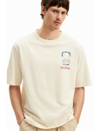 Conçu par Desigual, ce T-shirt allie design artistique et confort optimal. Sa coupe ajustée met en valeur la silhouette tout en offrant une liberté de mouvement idéale. Le motif inspiré des paysages méditerranéens apporte une touche d’originalité et de fraîcheur à vos tenues casual.