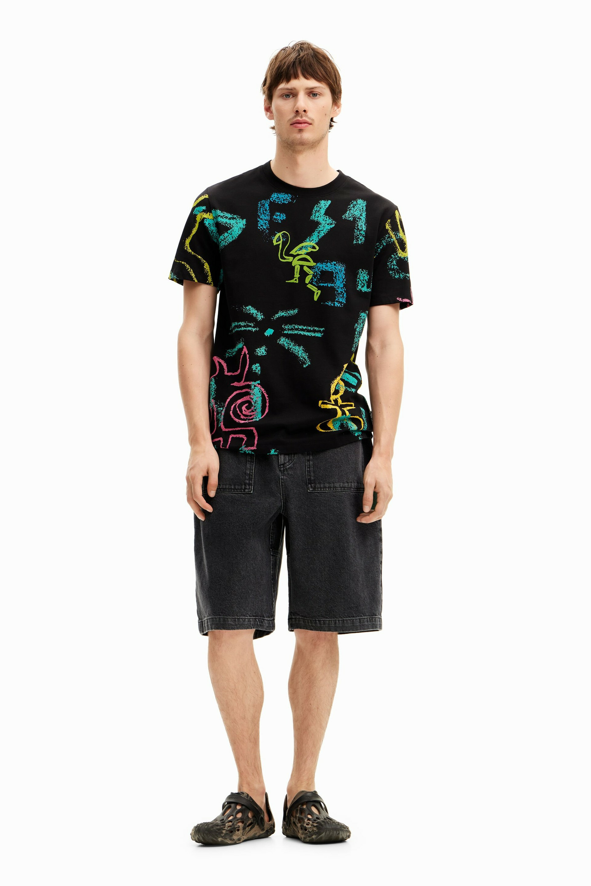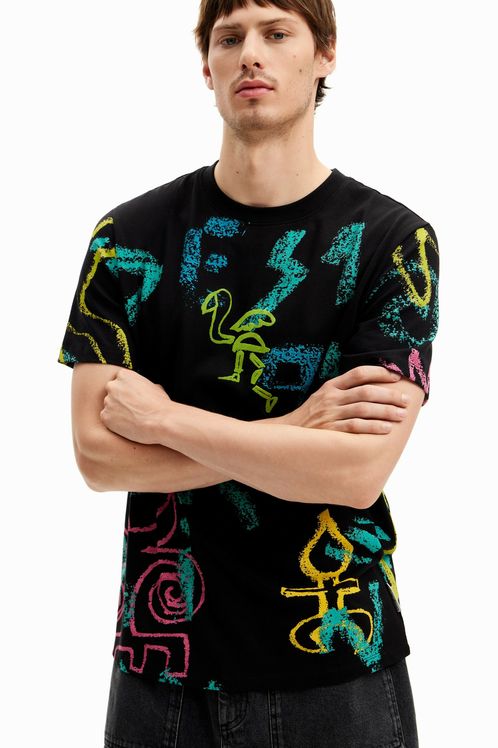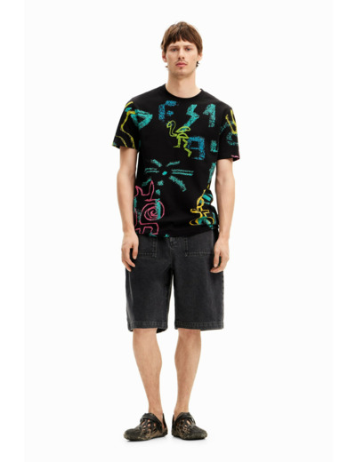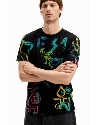 Affichez votre style avec ce T-shirt manches courtes à col rond, sublimé par des illustrations aux couleurs contrastées qui dynamisent votre tenue. Une pièce essentielle pour un look moderne et affirmé.