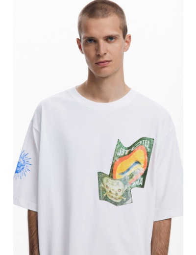 Confectionné par Desigual, ce T-shirt à col rond incarne une silhouette décontractée sans sacrifier le chic. La qualité des matériaux assure un tombé parfait et un confort optimal, idéal pour dynamiser vos tenues quotidiennes. Son design unique révèle une personnalité affirmée, parfaite pour ceux qui veulent se démarquer avec subtilité.