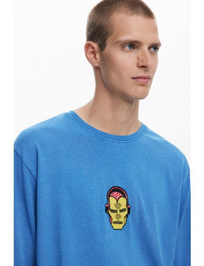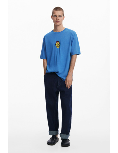 Affichez un style unique avec ce T-shirt à manches courtes alliant broderie délicate sur le devant et imprimé bande dessinée audacieux au dos. Une pièce qui capte le regard et affirme votre personnalité.