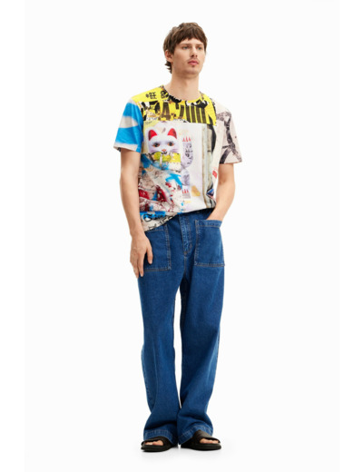 Affichez un style urbain affirmé avec ce T-shirt en maille au col rond, sublimé par un imprimé inspiré de la rue japonaise. Une pièce unique signée Desigual qui allie confort et audace graphique.