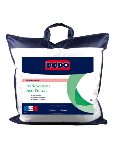 Grâce à sa taie 100% coton traitée contre les acariens, les personnes sujettes aux allergies seront protégées. Vos nuits seront plus saines et plus réparatrices avec l'oreiller Acti Protect.