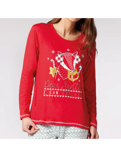 Pyjama Femme Noël En Famille Rouge/Écru Imprimé
