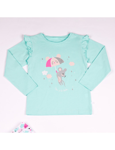 On aime le motif de ce pyjama avec des nuages de pluie et une petite souris. Ce pyjama cocooning se compose d’un pantalon et d’un pull, parfait pour les fraiches nuits.