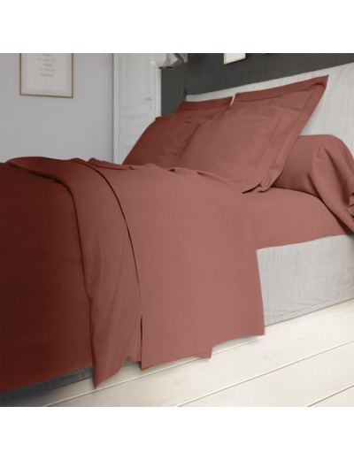 Optez pour le drap housse en percale de coton dans la teinte brique.
