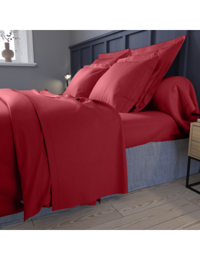 Drap Plat Partition Satin De Coton Coloris Rouge