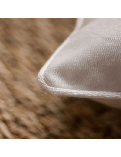 Cet oreiller est également trés doux puisqu'il est dôté d'une enveloppe 100% percale de coton. Ses finitions passepoil blanc sont soigneusement contrôlées afin que le duvet ne s'échappe pas.
