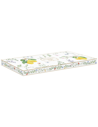 En porcelaine. Présentation dans une jolie boite cadeau aux couleurs du décor. Existe dans cette collection : Assiettes, Plats, Saladier, Theière, Bol, Déjeuner, Mugs, Tasses à café, Set apéritifs, Nappes, Chemin de table, Sets de table et Serviettes papier, Couverts et Plateaux.