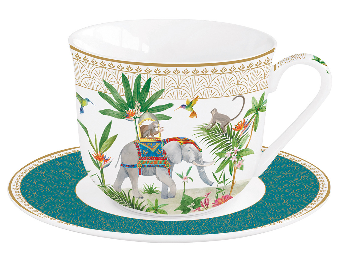 En porcelaine. Présentation dans une jolie boite cadeau aux couleurs du décor. Existe dans cette collection : Assiettes, Plats, Saladier, Theière, Bol, Déjeuner, Mugs, Tasses à café, Set apéritifs, Nappes, Chemin de table, Sets de table et Serviettes papier, Couverts et Plateaux.