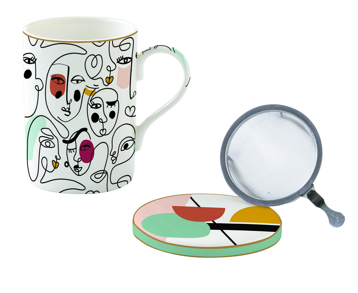 En porcelaine. Présentation dans une jolie boite cadeau aux couleurs du décor. Existe dans cette collection : Assiettes, Plats, Saladier, Theière, Bol, Déjeuner, Mugs, Tasses à café, Set apéritifs, Nappes, Chemin de table, Sets de table et Serviettes papier, Couverts et Plateaux.