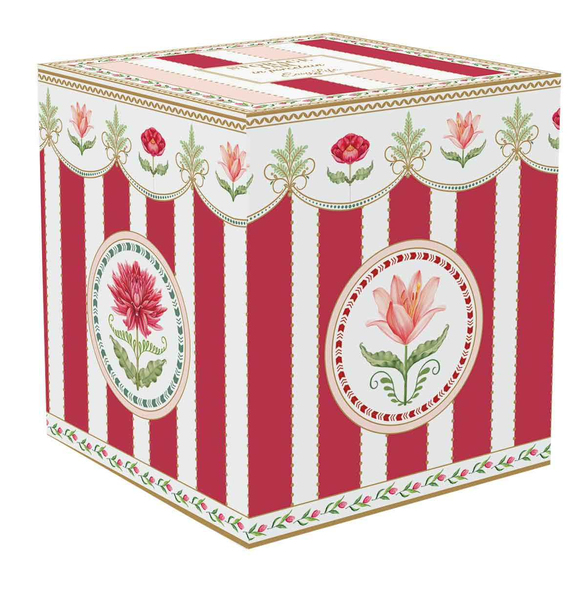 En porcelaine. Présentation dans une jolie boite cadeau aux couleurs du décor. Existe dans cette collection : Assiettes, Plats, Saladier, Theière, Bol, Déjeuner, Mugs, Tasses à café, Set apéritifs, Nappes, Chemin de table, Sets de table et Serviettes papier, Couverts et Plateaux.