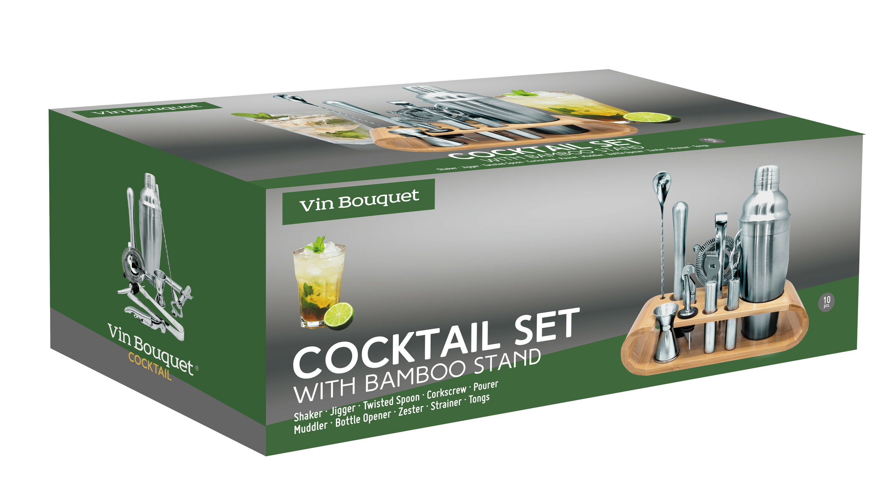 Tous les ustensiles sont organisés dans une base en bambou élégante et pratique, parfaite pour garder tout à portée de main et préparer des cocktails comme un pro.