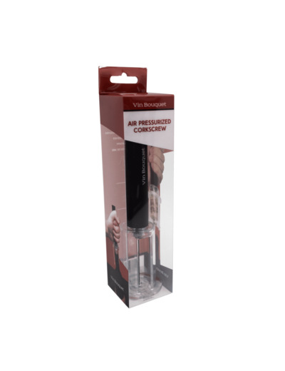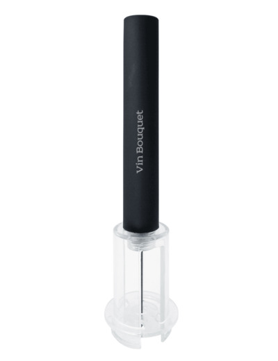 Tire-bouchon à pression qui consiste à injecter de l'air par pompage manuel entre le vin et le bouchon pour expulser le bouchon sans effort. De conception ergonomique en ABS et cuivre.