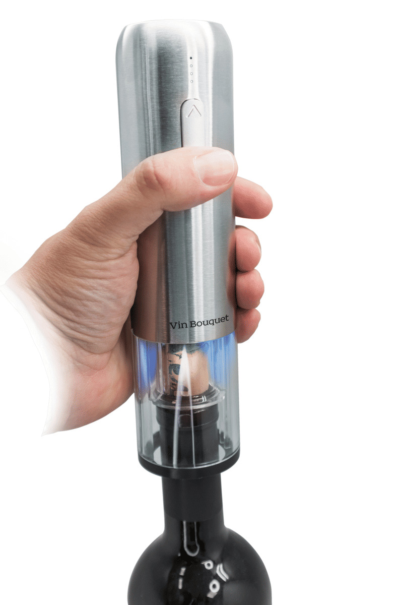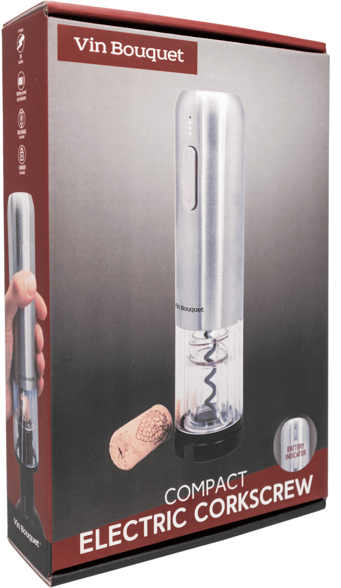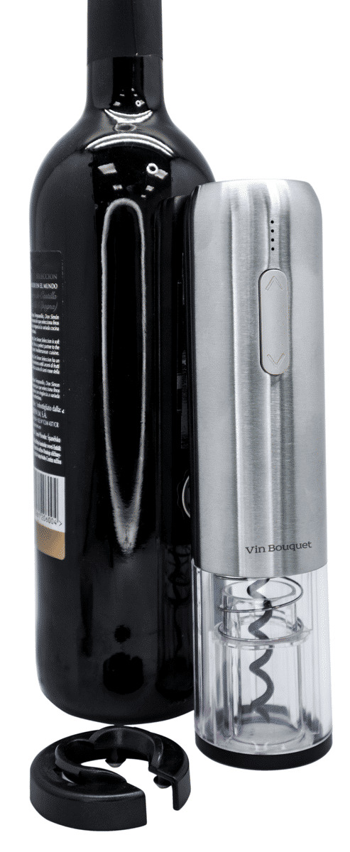 Tire-bouchon électrique rechargeable. Pour une ouverture de bouteille facile, rapide et agréable. Equipé d'un indicateur de charge. Une charge est suffisante pour l'ouverture d'une trentaine de bouteilles. Repose sur un socle coupe bague. En acier manganèse et ABS et livré avec un rechargeur de 12V.