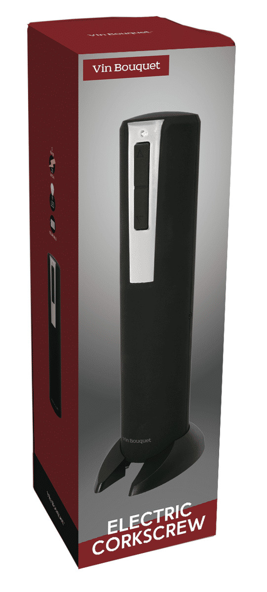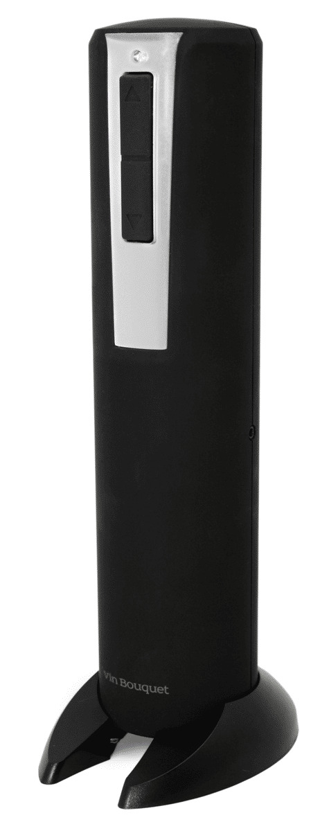 Tire-bouchon électrique rechargeable. Pour une ouverture de bouteille facile, rapide et agréable. Equipé d'un indicateur de charge. Une charge est suffisante pour l'ouverture d'une trentaine de bouteilles. Repose sur un socle coupe bague. En acier manganèse et ABS et livré avec un rechargeur de 12V.