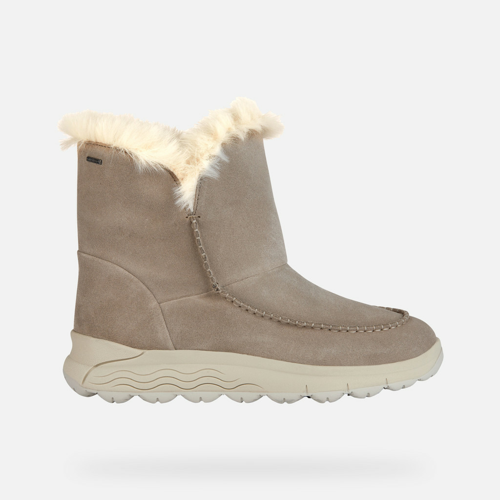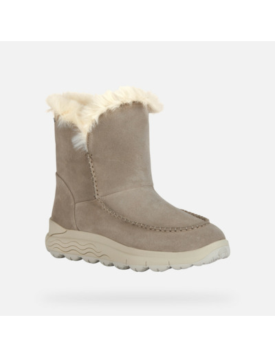 • Caractéristiques clés : Bottines pour femme chaudes, confortables et respirantes, dotées d’une semelle extérieure ultra-amortie pour une marche légère. Réalisées en cuir velours souple pour un look intemporel et rehaussées par un détail en fausse fourrure, ces chaussures sont proposées ici dans une tonalité beige raffinée. Pensées pour la saison froide, les Spherica™ 4x4 ABX offrent un bien-être maximal en mille occasions, de la ville aux activités de loisirs.