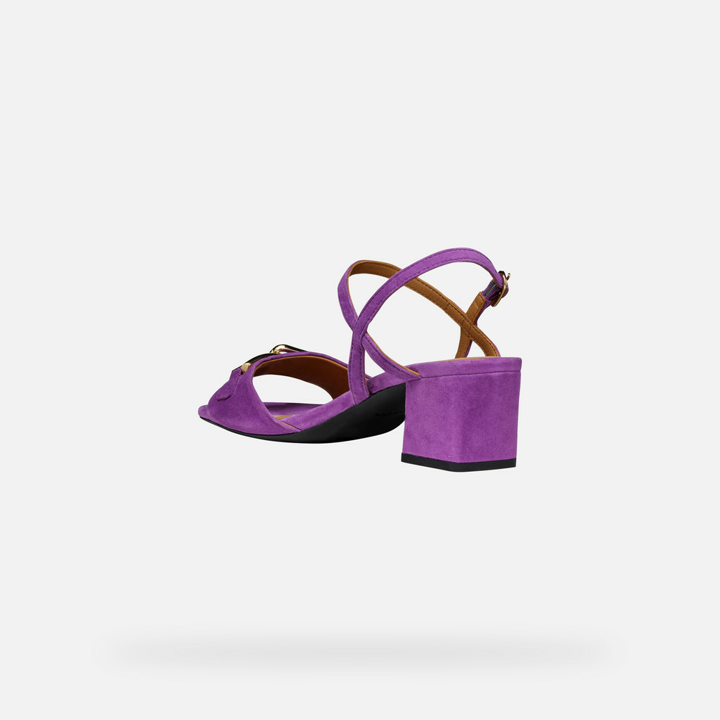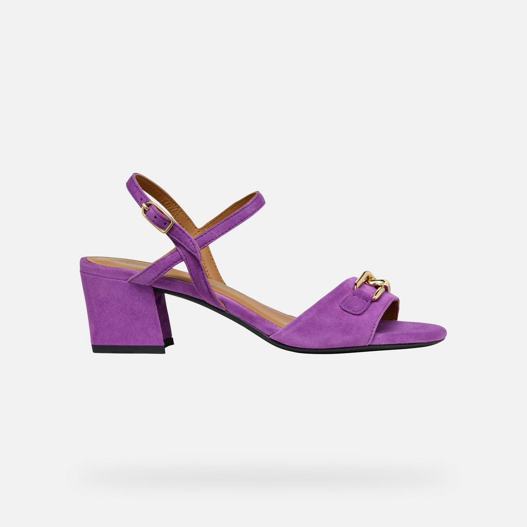 • Caractéristiques clés : Sandales pour femme à l’allure féminine et au design essentiel, rehaussées par un sobre détail métallique. Légères et respirantes, ces chaussures sont réalisées en daim souple et sont déclinées ici dans une vive tonalité violette qui ajoute de la personnalité à n’importe quelle association. Les New Eraklia 50 sont adaptées pour accompagner aussi bien les looks professionnels que les tenues plus élégantes, et sont de parfaites alliées citadines avec leur confortable talon large.