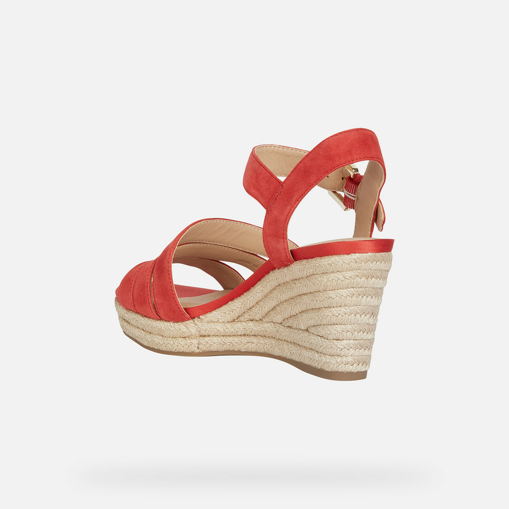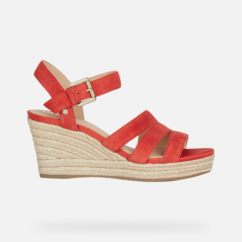 • Caractéristiques clés : Sandales pour femme confortables et respirantes, à associer aux tenues informelles de tous les jours.Quintessence d'un charme décontracté, les Soleil sont des sandales caractérisées par une bride pratique à la cheville et par une semelle compensée tressée dans le style des espadrilles. Proposées ici en daim rouge, ces chaussures incarnent un charme drôle et pétillant, idéal pour être toujours au centre de l'attention.