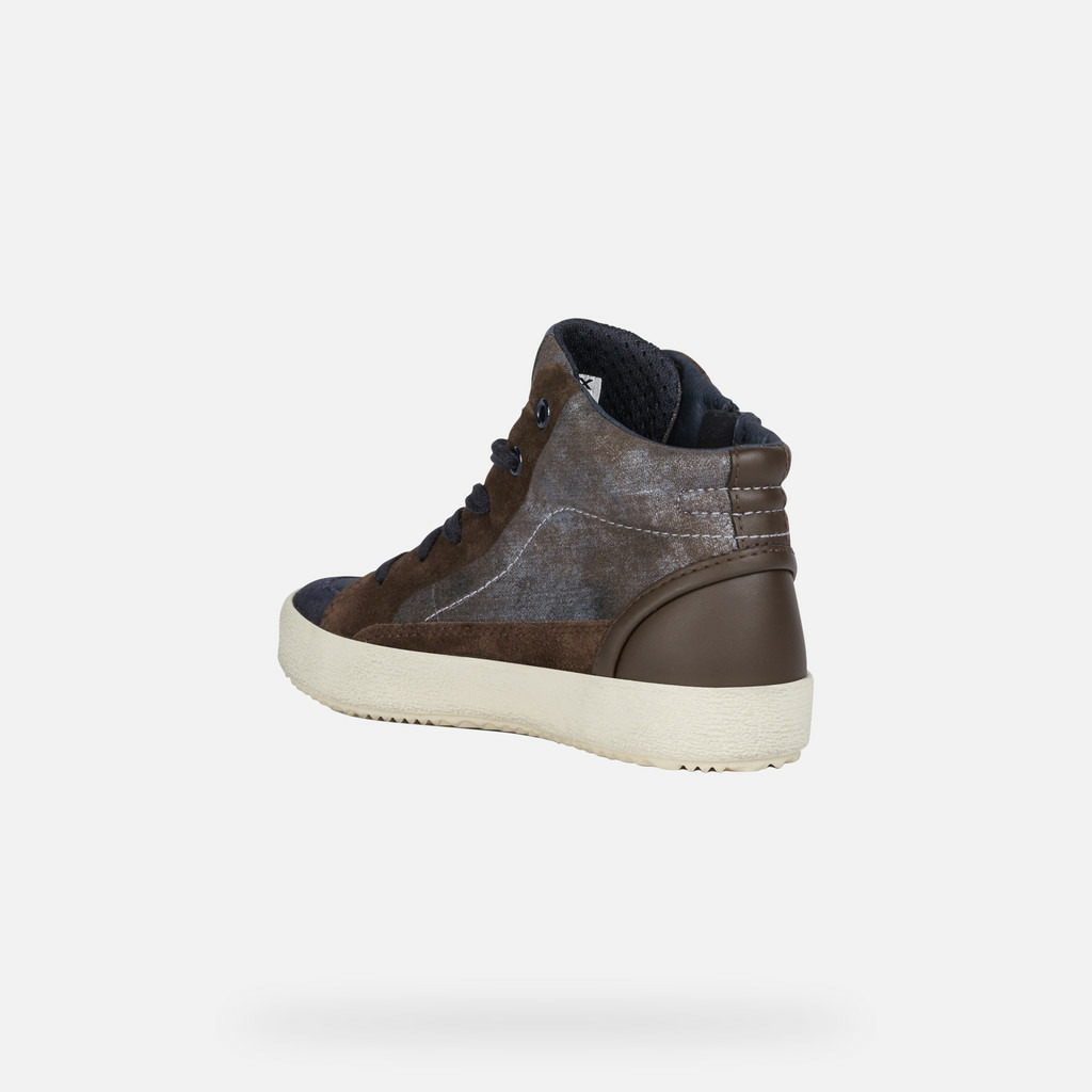 Les chaussures Alonisso de Geox présentent un design urbain et métropolitain et sont réalisées en daim et toile à effet nuage de couleur café et bleu marine, une association de couleurs qui permet de les coordonner facilement, avec un style qui s'adapte à toutes les circonstances. Les lacets et la fermeture éclair latérale facilitent l'enfilage.