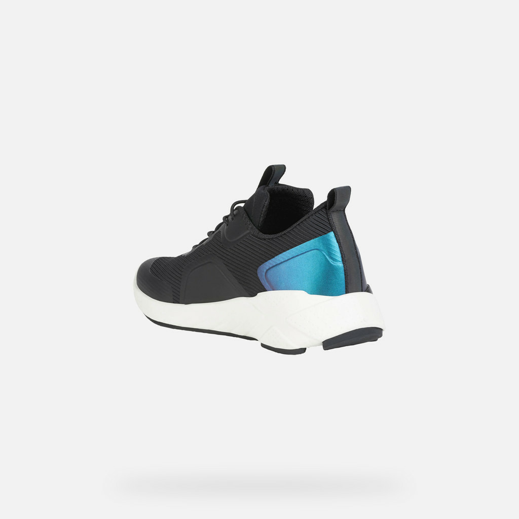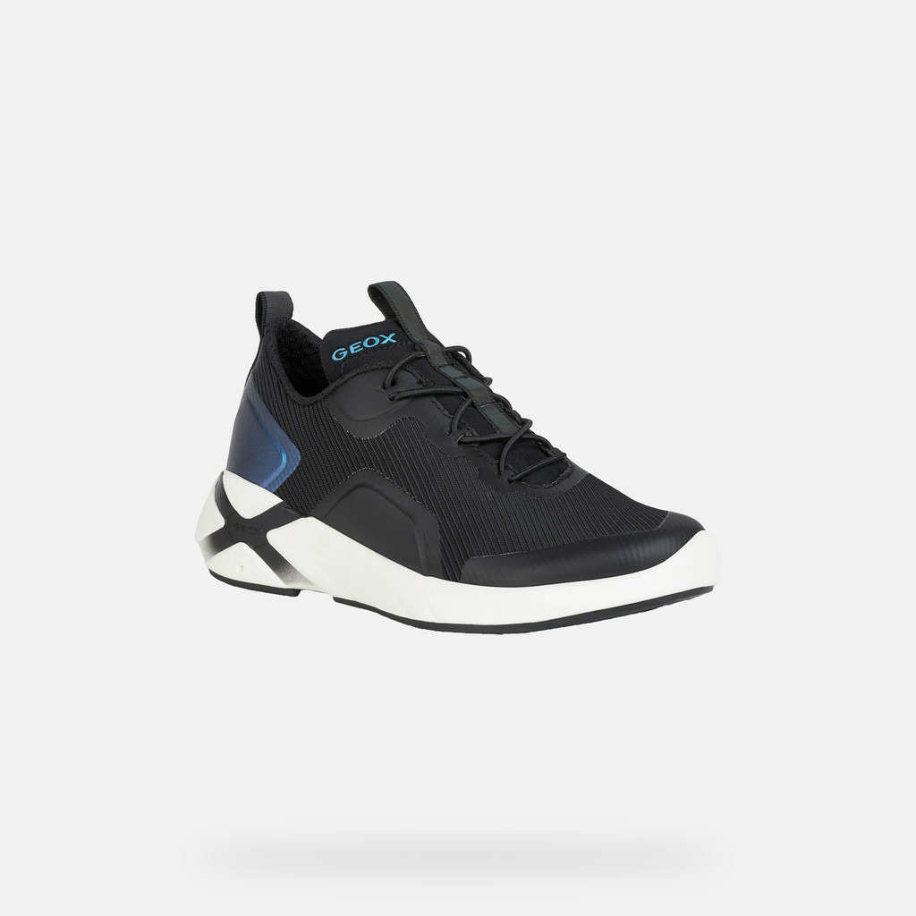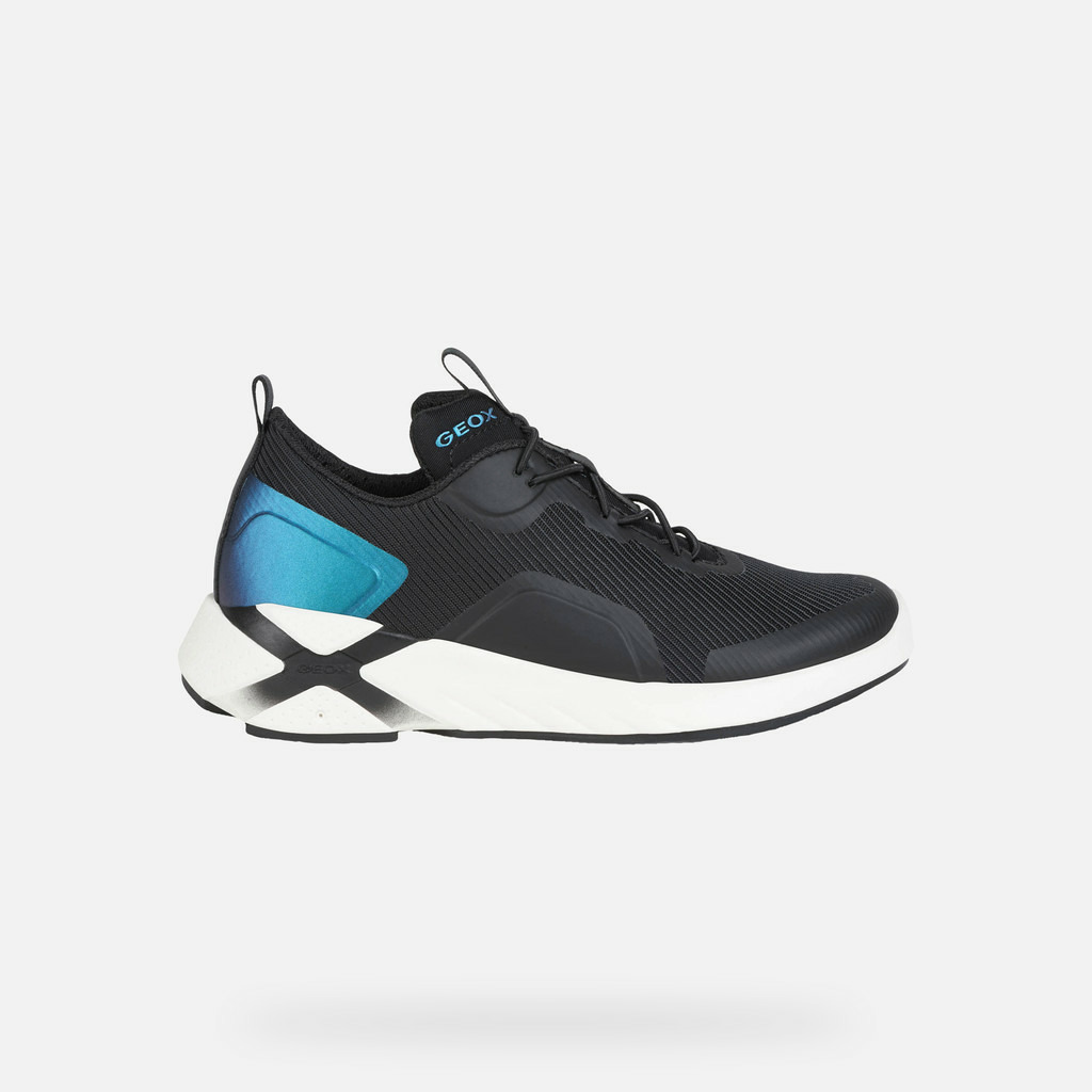 Divertissement garanti avec Playkix, les baskets avec une technologie révolutionnaire intégrée. Pratiques et respirantes, réalisées en tissu et matière effet cuir de couleur noire polyvalente avec empiècement bleu ciel, ces baskets peuvent être connectées à une appli et utilisées comme commandes d'un jeu vidéo, pour se sentir toujours protagoniste.
