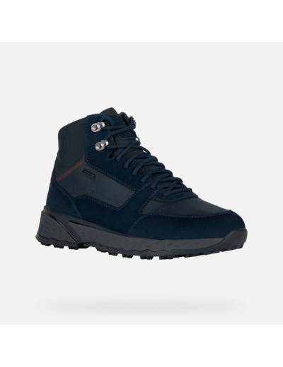 • Caractéristiques clés : Sneakers semi-montantes pour homme imperméables et respirantes, à l’esthétique hybride d’inspiration outdoor. Proposées ici dans une version bleu marine particulièrement polyvalente, ces chaussures affichent une tige en cuir velours et cuir pull-up au look décontracté recherché. Garantie de confort et de protection même en cas de pluie intense, les Sterrato ABX sont adaptées aussi bien pour les journées en ville que pour les excursions extra-urbaines.