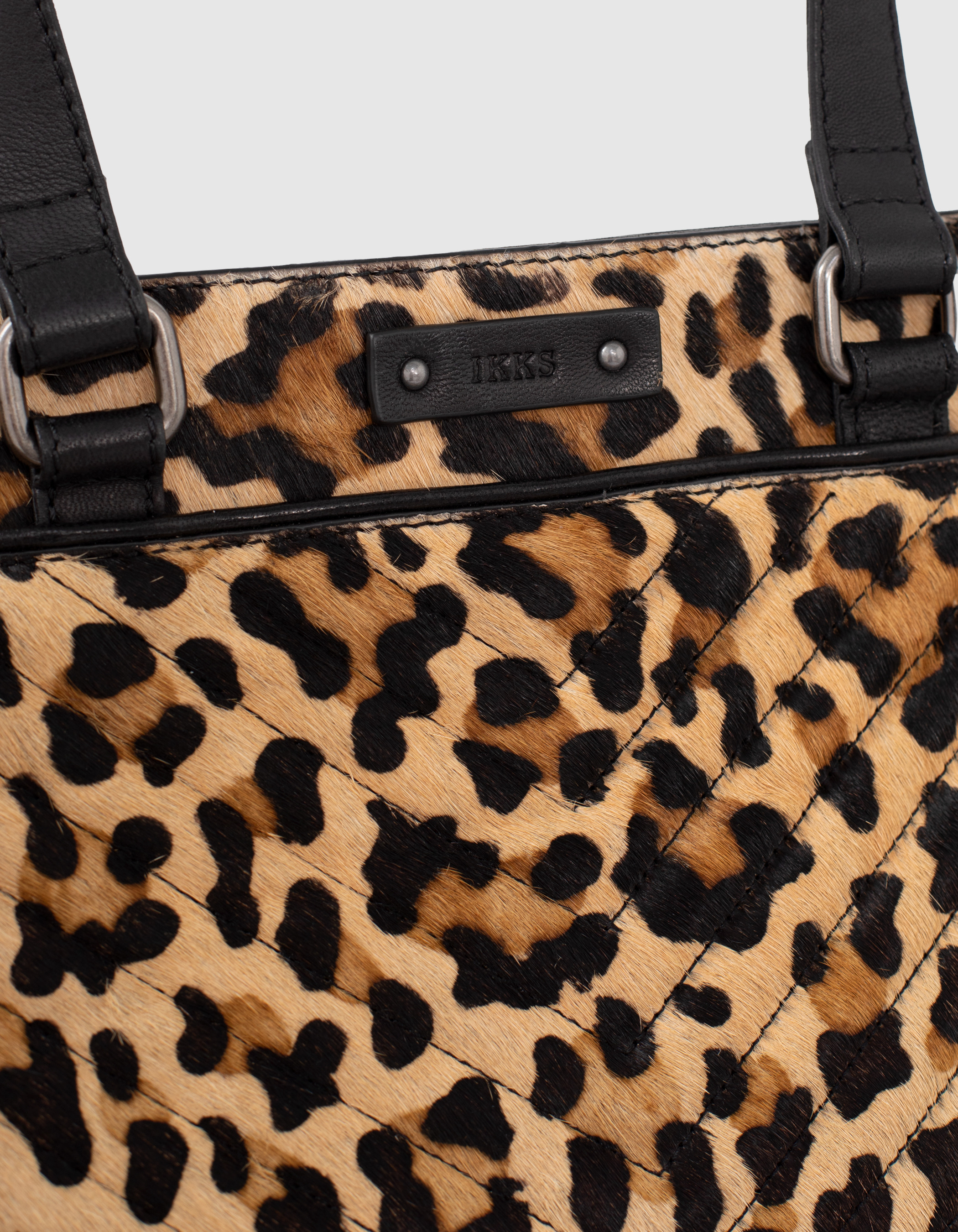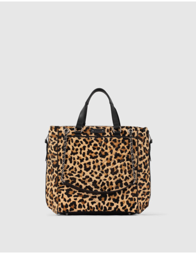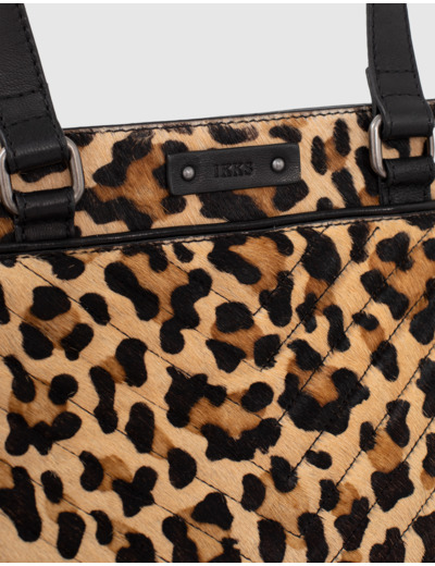 LE 1440, sac cabas en cuir de vachette peau effet poulain imprimé léopard
