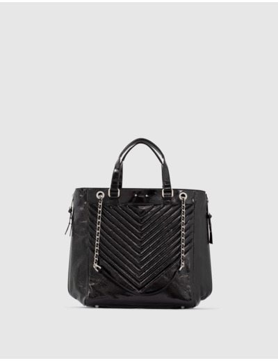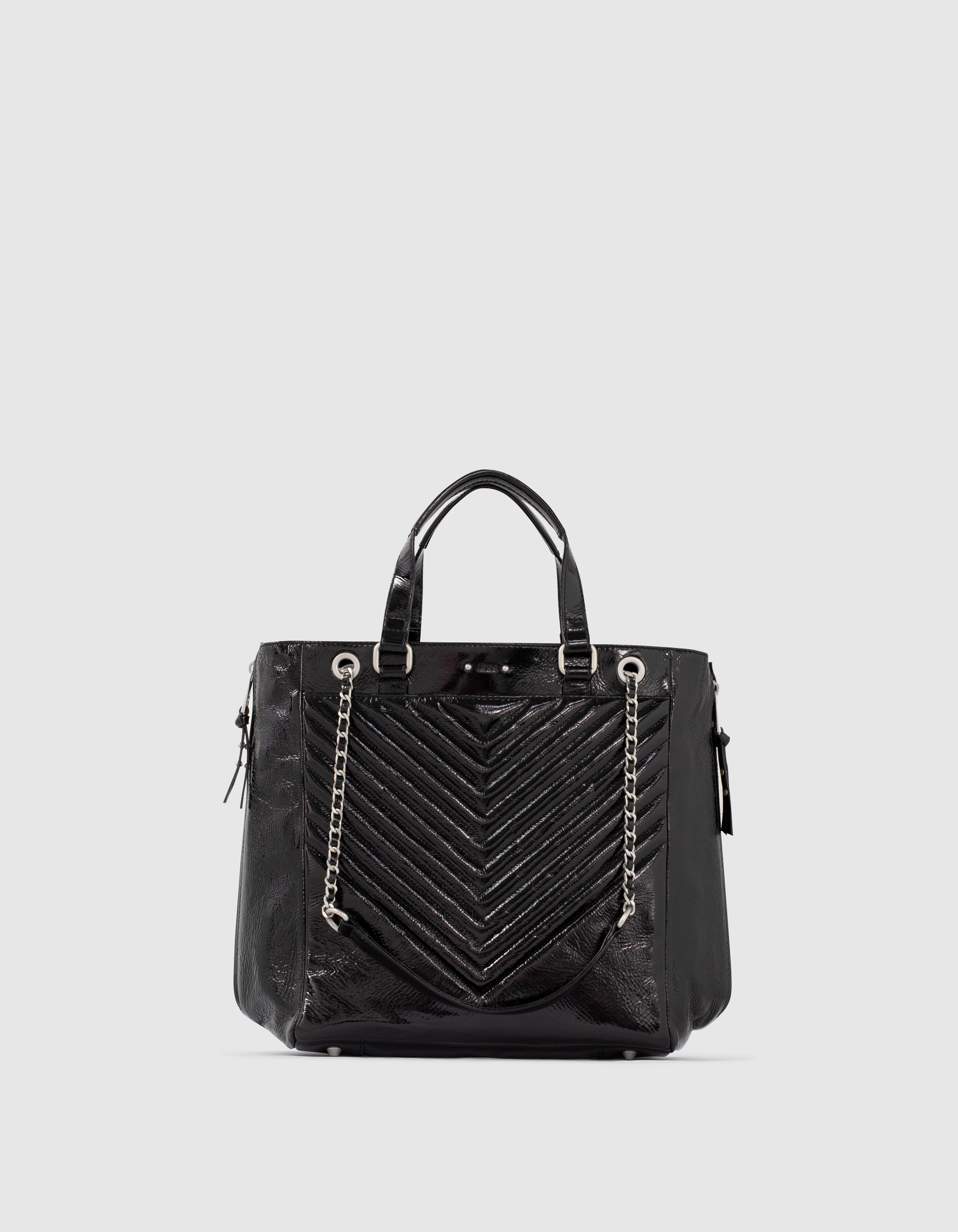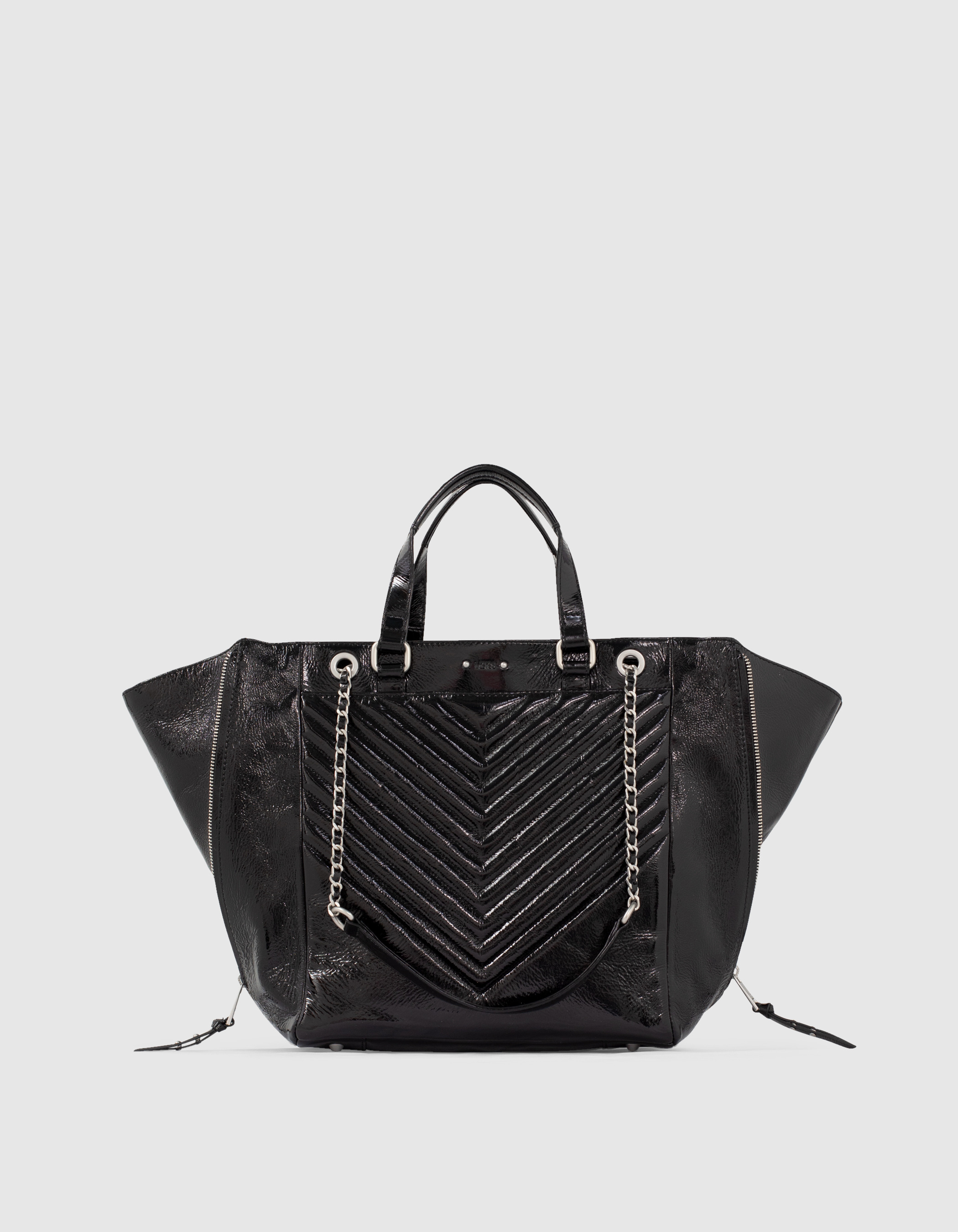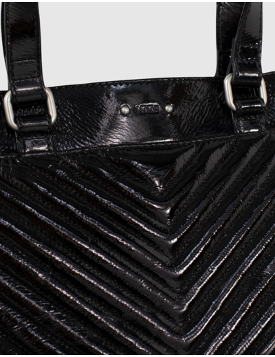 LE 1440 GLOSSY Leather Story, sac cabas en cuir vernis noir chrome free pour femme