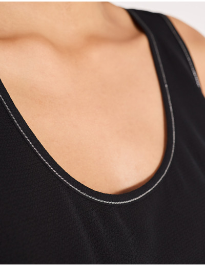 Encolure et emmanchures bordées de surpiqûres métallisées effet bijou