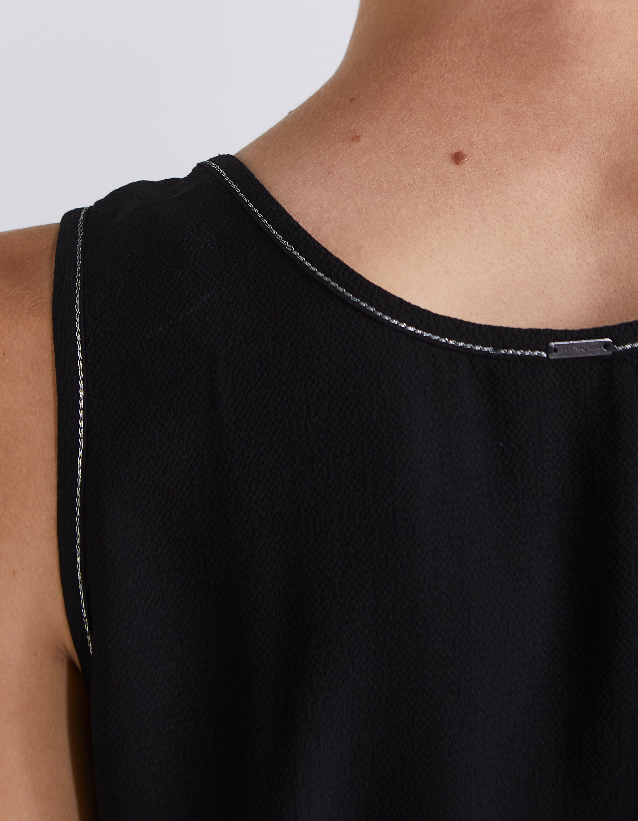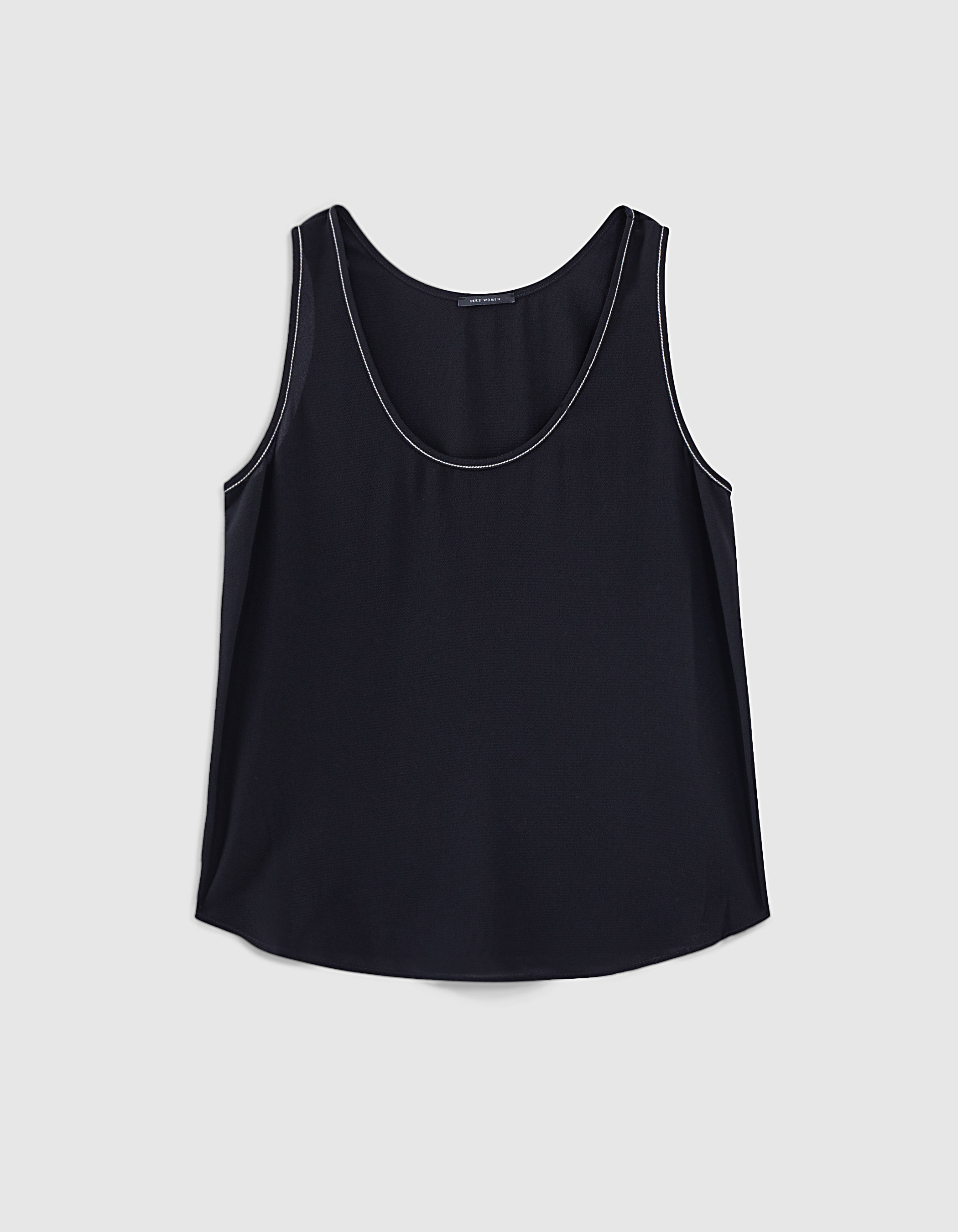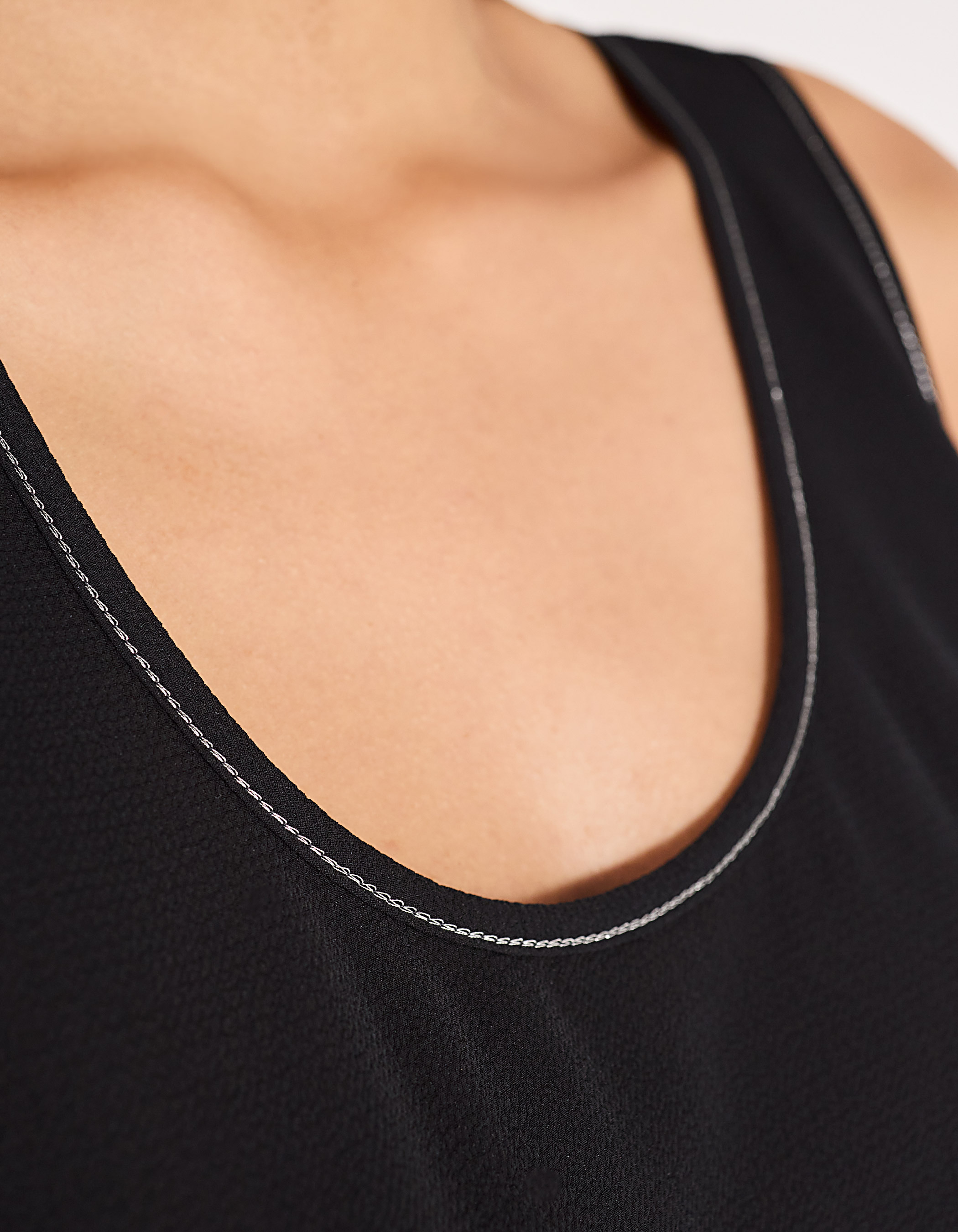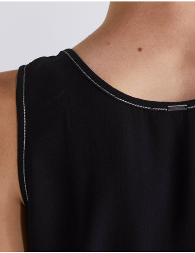 Top En Crêpe Noir Surpiqûre Bijou Col Femme