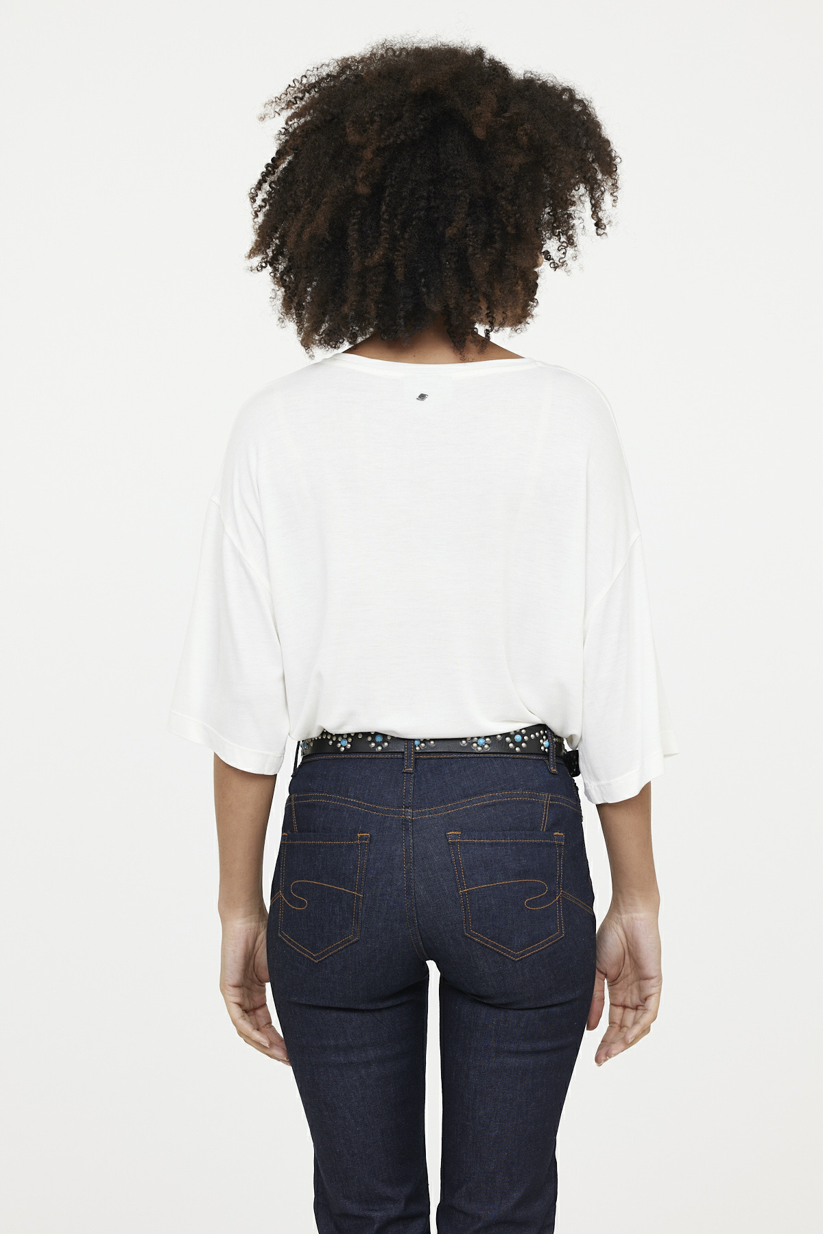 Confectionné dans un tissu doux et respirant, ce T-shirt épouse délicatement le corps sans le contraindre. Son design épuré et ses finitions soignées en font une pièce polyvalente, idéale pour composer des looks casual ou plus travaillés. Il s’intègre parfaitement à votre garde-robe femme, apportant une touche de modernité et de simplicité.