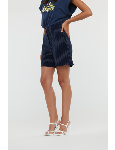 Bermuda Costume À Rayures, Fermeture Zippée